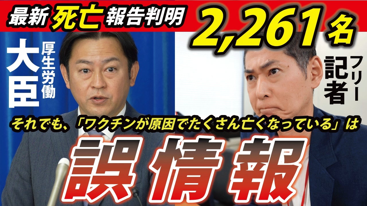 令和6年10月29日 福岡厚生労働大臣記者会見<br><br>この動画は投稿者が現地で撮影したものを編集し公開しています。<br><br>❑この記者会見を終えて 高橋記者と雑談<br>➡<a href="https://youtube.com/live/v4_9u_q-29w" target="_blank" rel="noopener nofollow">https://youtube.com/live/v4_9u_q-29w</a><br><br>❑前回の記者会見は<br>➡<a href="https://youtu.be/8MQ4f4MSNxc" target="_blank" rel="noopener nofollow">https://youtu.be/8MQ4f4MSNxc</a><br>―――――――――――――――――――――――――――――――<br><br>❑「世界を欺いた〇〇〇〇〇〇〇」(宝島社新書)<br><a href="https://amzn.to/3ymDfgr" target="_blank" rel="noopener nofollow">https://amzn.to/3ymDfgr</a><br>鳥集徹(著) 闇のダディ(著) 藤江成光(著)←私<br><br>―――――――――――――――――――――――――――――――<br><br>❑藤江の「真の」日本人増加計画(ニコニコチャンネル+)<br><a href="https://nicochannel.jp/fujie/" target="_blank" rel="noopener nofollow">https://nicochannel.jp/fujie/</a><br>※毎月第3土曜日の夜、定例ライブ配信!<br><br><br>❏藤江の活動を支援していただける方向け<br>【藤江支援口座】のご案内<br>住信SBIネット銀行 ミカン支店(店番号103)<br>口座番号 3107694<br>口座名義 フジエ マサミツ<br><br>――――――――――――――――――――――――――――――<br><br>地域と日本の存続のためニ!【藤江2ndチャンネル】<br><a href="https://www.youtube.com/channel/UCfBh4rv5UT7D-qR6KsoZrsA" target="_blank" rel="noopener nofollow">https://www.youtube.com/channel/UCfBh4rv5UT7D-qR6KsoZrsA</a><br><br>今こそ!三千年の底力【藤江3rdチャンネル】<br><a href="https://www.youtube.com/channel/UC5Yrsm8-X8nZj4uKgvE7CBw" target="_blank" rel="noopener nofollow">https://www.youtube.com/channel/UC5Yrsm8-X8nZj4uKgvE7CBw</a><br><br>四海兄弟【藤江4thチャンネル】<br><a href="https://www.youtube.com/channel/UCiyJNO57quj80Ysy7nOABvA" target="_blank" rel="noopener nofollow">https://www.youtube.com/channel/UCiyJNO57quj80Ysy7nOABvA</a><br><br>五穀豊穣【藤江5thチャンネル】<br><a href="https://www.youtube.com/channel/UCptMJCoKYghfew5tDzoEqHQ" target="_blank" rel="noopener nofollow">https://www.youtube.com/channel/UCptMJCoKYghfew5tDzoEqHQ</a><br><br>藤江のX(Twitter)<br><a href="https://twitter.com/JINKOUZOUKA_jp" target="_blank" rel="noopener nofollow">https://twitter.com/JINKOUZOUKA_jp</a>