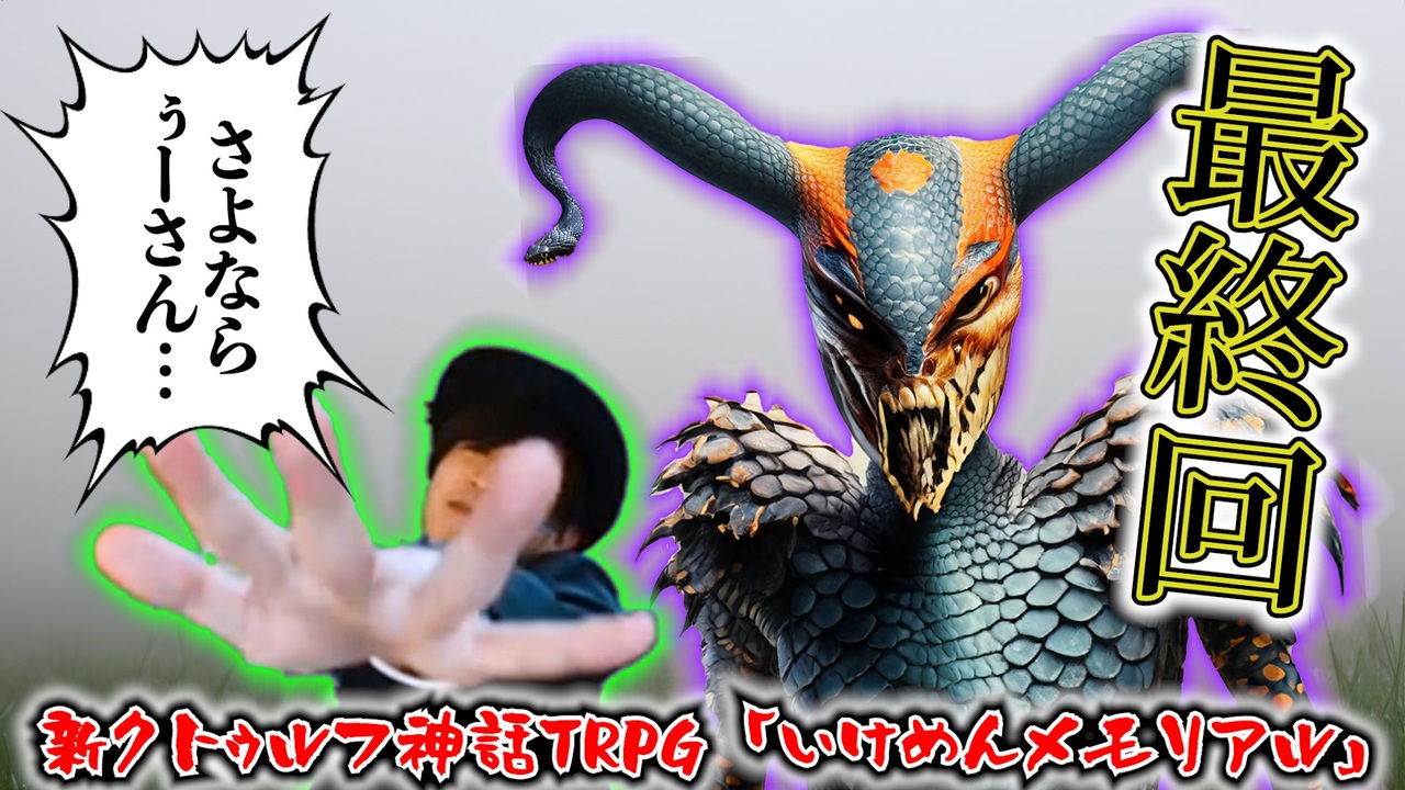 <strong>果たして3人の命運は…?<br>そして真相編も良ければご覧ください(<a href="https://www.nicovideo.jp/watch/so44273395" class="watch">so44273395</a>)</strong><br><br>▼KP▼<br>倭寇(わこう) → 神<br>▼プレイヤー▼<br>こーすけ → 外村 広司 <a href="https://iachara.com/view/9073934" target="_blank" rel="noopener nofollow">https://iachara.com/view/9073934</a><br>マサ → 種埼 雅治 <a href="https://iachara.com/view/9090561" target="_blank" rel="noopener nofollow">https://iachara.com/view/9090561</a><br>せらみかる → 表裏 世文 <a href="https://iachara.com/view/9077642" target="_blank" rel="noopener nofollow">https://iachara.com/view/9077642</a><br><br>※倭寇作のオリジナルシナリオです<br>※7版&ハウスルール多々ありなのでご注意ください<br><br><strong>【フルver(有料・無編集)】<a href="https://www.nicovideo.jp/watch/so44070782" class="watch">so44070782</a><br>【動画まとめ】 <a href="https://www.nicovideo.jp/mylist/32090282" target="_blank" rel="noopener">mylist/32090282</a></strong><br><br><span style="color: #9900ff;"><strong>▼X▼ </strong></span><br>【倭寇】 @wakou2525<br>【こーすけ)】 @kosuke_saiore<br>【マサ】 @masa1225kami<br>【せらみかる】 @seramikarutitan<br><br>【新クトゥルフ神話TRPG ルールブック】---------------------------------------------------<br>本作は、「 株式会社アークライト 」及び「株式会社KADOKAWA」が権利を有する『新クトゥルフ神話TRPG』の二次創作物です。<br><br>Call of Cthulhu is copyright ©1981, 2015, 2019 by Chaosium Inc. ;all rights reserved. Arranged by Arclight Inc.<br>Call of Cthulhu is a registered trademark of Chaosium Inc.<br>PUBLISHED BY KADOKAWA CORPORATION 「新クトゥルフ神話TRPG ルールブック」<br>------------------------------------------------------------------------------------------------