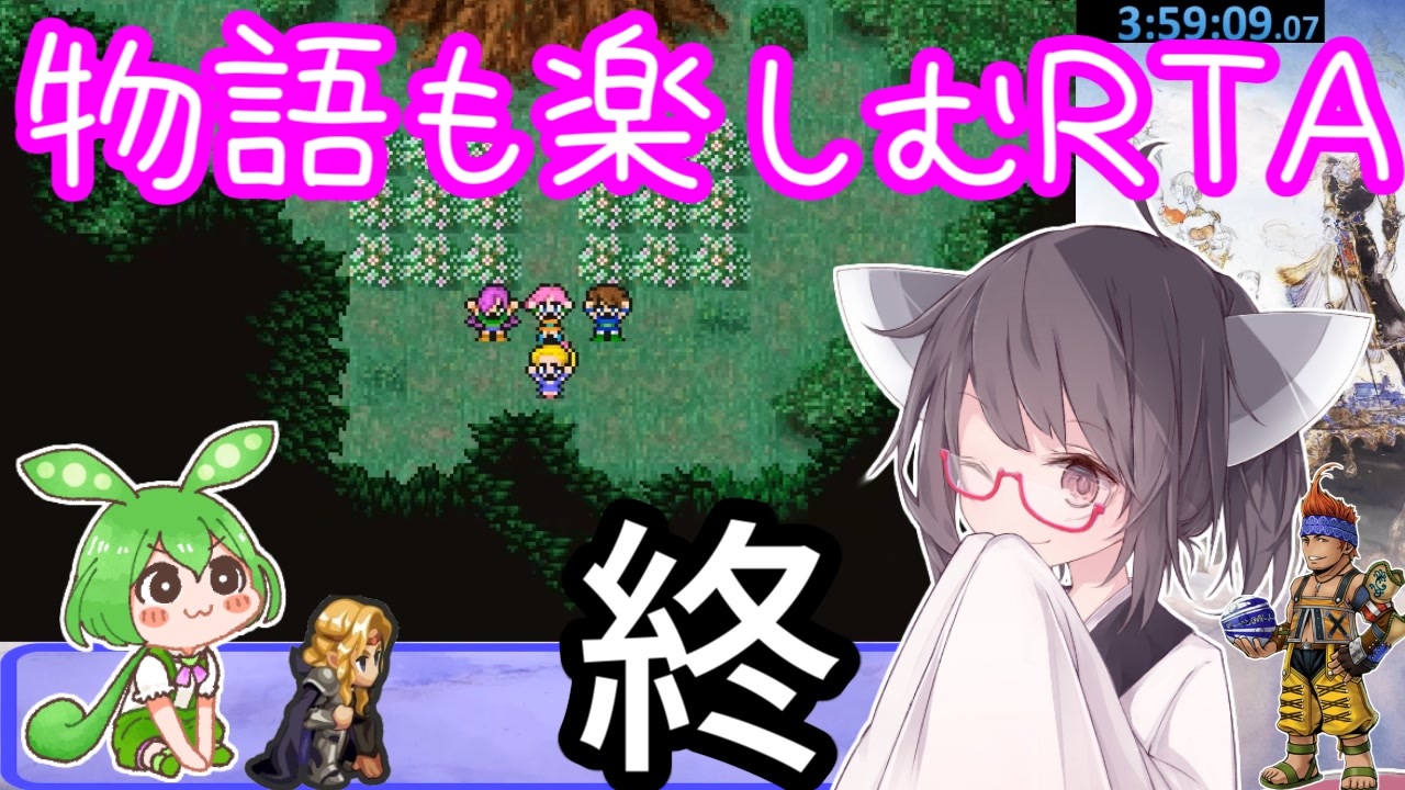 大変長らくお待たせしました。<br>FF5物語も楽しむRTAはこれにて完結です。<br><br>ファイナルファンタジー5ピクセルリマスター(STEAM版)です。<br>RTAというより物語を楽しむ動画なので、そんな感じで見てくれたらと思います。<br><br><span style="color: #ff0000;"><strong>動画を楽しんで頂けたら『いいね』をぽちっとお願いします!</strong></span><br>お知らせ用のツイッター始めました。 <a href="https://twitter.com/S9G7d4lM1TLkoSd" target="_blank" rel="noopener nofollow">https://twitter.com/S9G7d4lM1TLkoSd</a><br><br>過去作PART1豆リスト <a href="https://www.nicovideo.jp/mylist/75696856" target="_blank" rel="noopener">mylist/75696856</a> <br><br>使用合成音声ソフト<br>VOICEROID:東北きりたん、東北ずん子、東北イタコ<br>VOICEPEAK:<span style="color: #262626;">東北</span>きりたん、ずんだもん、<br>A.I.VOICE:紲星あかり、<br>VOICEVOX:<span style="color: #262626;">ずんだもん、四国めたん、栗田まろん、</span>剣崎雌雄、雀松朱司、<br>麒ヶ島宗麟、ちび式じい、猫使ビィ<br><a href="https://voicevox.hiroshiba.jp" target="_blank" rel="noopener nofollow">https://voicevox.hiroshiba.jp</a><br><br>『ファイナルファンタジーV』<br>© 1992, 2021, 2023 SQUARE ENIX CO., LTD. All Rights Reserved.<br>LOGO ILLUSTRATION:©1992 YOSHITAKA AMANO