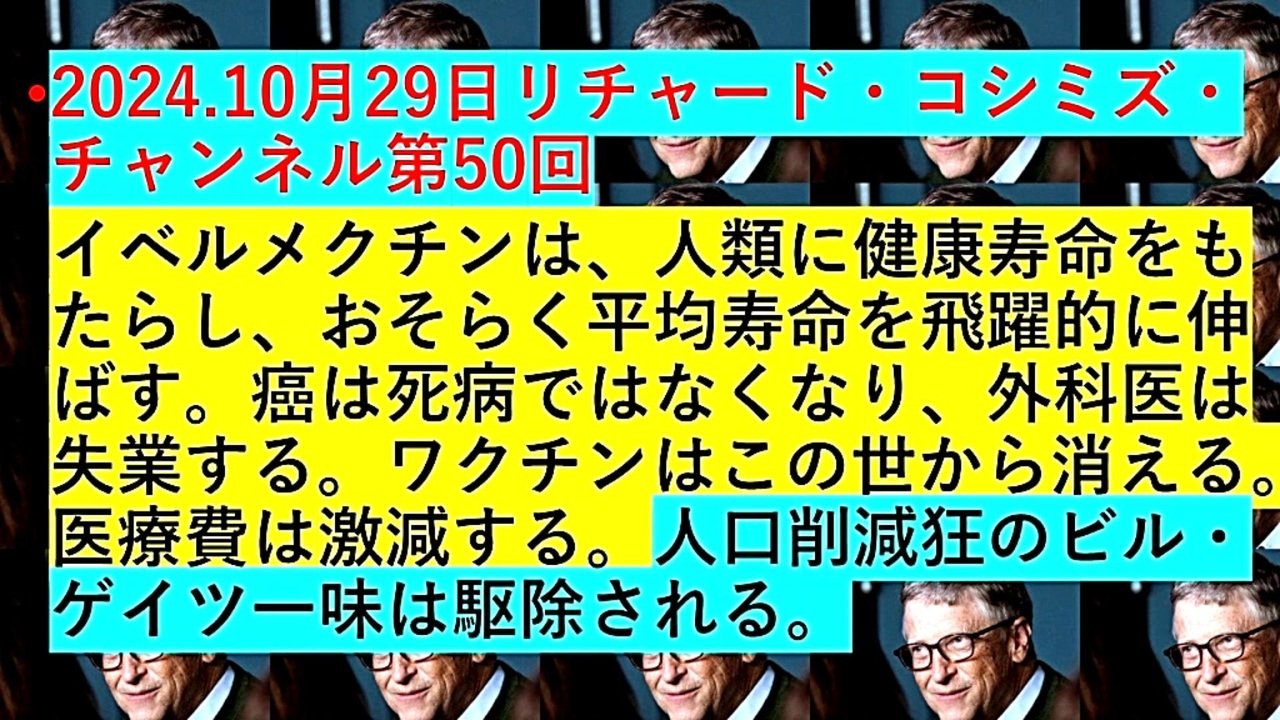 <span style="color: #cc0000;"><strong>◐『 リチャード・コシミズ・チャンネル⦅ 第50回放送 ⦆⦅ 暫定版 ⦆』</strong></span><br><br> <span style="color: #ff0000;"><strong>「『 イベルメクチン 』は、『 人類 』に『 健康寿命 』をもたらし、おそらく『 平均寿命 』を『 飛躍的 』に『 伸ばす 』。<br> 『 癌 』は『 死病 』ではなくなり、『 外科医 』は『 失業 』する。『 ワクチン 』は『 この世 』から『 消える 』。<br> 『 医療費 』は『 激減 』する。『 人口削減狂 』の『 ビル・ゲイツ一味 』は『 駆除 』される 」</strong></span><br><br> <span style="color: #38761d;"><strong>◐『 リチャード・コシミズ 書籍 :「 2024年 鳥インフルH5N1バイオテロを生き抜くために 」』</strong></span><br><span style="color: #0000ff;"><strong> <a href="https://x.gd/AG1bf" target="_blank" rel="noopener nofollow">https://x.gd/AG1bf</a></strong></span><br><br> <span style="color: #38761d;"><strong>◐ 『 リチャード・コシミズ・チャンネル⦅ ニコニコ チャンネル ⦆』</strong></span><br><span style="color: #0000ff;"><strong> <a href="https://ch.nicovideo.jp/richardkoshimizu" target="_blank" rel="noopener nofollow">https://ch.nicovideo.jp/richardkoshimizu</a></strong></span><br><br><span style="color: #38761d;"><strong> ◐ 『 リチャード・コシミズ ニコニコ生放送⦅ LIVE ⦆』</strong></span><br><span style="color: #0000ff;"><strong> <a href="https://www.nicovideo.jp/user/120930363/live_programs" target="_blank" rel="noopener nofollow">https://www.nicovideo.jp/user/120930363/live_programs</a></strong></span><br><br> <span style="color: #38761d;"><strong>◐ 『 リチャード・コシミズ「 Rumble 」公式 動画ギャラリー 』</strong></span><br><span style="color: #0000ff;"><strong> <a href="https://rumble.com/user/richardkoshimizu" target="_blank" rel="noopener nofollow">https://rumble.com/user/richardkoshimizu</a></strong></span><br><br>