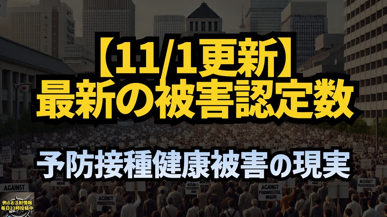 藤江さんのポスト<br>なんということでしょう・・<br>11歳男子の死亡が認定<br><br>本日(11/1)厚生労働省公表<br><br>予防接種健康被害救済制度<br>新型コロナワクチン分<br><br>新たに29件が認定(うち3名が死亡認定)<br><br>累計認定数 8,328件(うち死亡881名)<br><br>今回の死亡認定例<br>11歳 男 急性脳症、多臓器不全 死亡<br>52歳 女 心室細動 死亡<br>71歳 男 虚血性心不全 死亡<br><br>どこが安全なワクチンだよ!!!!!<br><br><a href="https://x.com/JINKOUZOUKA_jp/status/1852358817495052325?t=8eDNws6ZXgAyBkeu1g8JEA&s=19" target="_blank" rel="noopener nofollow">https://x.com/JINKOUZOUKA_jp/status/1852358817495052325?t=8eDNws6ZXgAyBkeu1g8JEA&s=19</a><br><br><br>鵜川さんのポスト<br>「遺族が厚労省前に集まり街宣します」<br><br>ここ最近の予防接種健康被害救済制度の審議会において出される結果は不認定者が認定者を上回りだしました。<br>理不尽な審議。<br>今878人の認定者を出しながら先の記者会見ではワクチンで亡くなったと言うのは誤情報、ベネフィットがリスクを上回っていると厚労大臣が発表した。。<br>バカにするんじゃない。<br>こんな理不尽な回答をする厚労省を絶対に許せない。<br><br>街宣にて訴えます。<br>応援頂けたら幸いです。<br><br><a href="https://x.com/sousyou13/status/1851936601649431023?t=V81mSMf--BHRKM_NDmJwpA&s=19" target="_blank" rel="noopener nofollow">https://x.com/sousyou13/status/1851936601649431023?t=V81mSMf--BHRKM_NDmJwpA&s=19</a><br><br><br>ワクチン<br>予防接種健康被害救済制度<br>コロナワクチン<br>ワクチン薬害<br>氷山の一角<br>ワクチン後遺症<br>死亡認定<br>ワクチン副反応<br>ワクチン被害<br>ワクチンのベネフィットがリスクを上回る<br>厚労省<br><br>「予防接種被害の現実」<br><br><br><br />著作権、肖像権に配慮して作成しております。<br><br>◆気になったニュースの台本!?<br>メモ代わりに作った台本をそのままあげてます<br><a href="https://keiichiro8140.hatenablog.com/." target="_blank" rel="noopener nofollow">https://keiichiro8140.hatenablog.com/.</a><br><br><br>ここからはシリーズ紹介<br><br><br>◆ ワクチン解毒・デトックス<br><a href="https://x.gd/fZweg" target="_blank" rel="noopener nofollow">https://x.gd/fZweg</a><br><br>◆ウイリアム・マキス博士のがん治療(イベルメクチン・フェンベンダゾール等)<br><a href="https://x.gd/AtFYS" target="_blank" rel="noopener nofollow">https://x.gd/AtFYS</a><br><br>◆予防接種健康被害救済制度<br><a href="https://x.gd/0xK9x" target="_blank" rel="noopener nofollow">https://x.gd/0xK9x</a><br><br>◆気になったニュース #1501~<br><br>◆ 【ショートver】気になったニュース<br><a href="https://x.gd/7MxXC" target="_blank" rel="noopener nofollow">https://x.gd/7MxXC</a><br><br>◆ 気になったニュース #1001~<br><a href="https://x.gd/Lp8gv" target="_blank" rel="noopener nofollow">https://x.gd/Lp8gv</a><br><br>◆ 気になったニュース #501~<br><a href="https://x.gd/EmbS4" target="_blank" rel="noopener nofollow">https://x.gd/EmbS4</a><br><br>◆ 気になったニュース #1~#500<br><a href="https://x.gd/uPhNb" target="_blank" rel="noopener nofollow">https://x.gd/uPhNb</a><br><br>◆ X(旧Twitter)・テレグラムで気になった情報<br><a href="https://x.gd/YG6FT" target="_blank" rel="noopener nofollow">https://x.gd/YG6FT</a><br><br>◆ 日比谷5万人パレードデ⚪生放送アーカイブ動画<br><a href="https://x.gd/3CHJv" target="_blank" rel="noopener nofollow">https://x.gd/3CHJv</a><br><br>◆日比谷5万人パレード⚪モのマイリスト作ってみました<br><a href="https://nico.ms/mylist/76828848?ref=sp_other" target="_blank" rel="noopener nofollow">https://nico.ms/mylist/76828848?ref=sp_other</a><br><br>◆3.30 令和の百姓⚪⚪<br><a href="https://www.nicovideo.jp/series/511791?ref=garage_share_other" target="_blank" rel="noopener nofollow">https://www.nicovideo.jp/series/511791?ref=garage_share_other</a><br><br>◆ 及川幸久さんの【XNEWS】シリーズ<br><a href="https://x.gd/3k78K" target="_blank" rel="noopener nofollow">https://x.gd/3k78K</a><br><br>◆これまでの動画<a href="https://x.gd/sPXoJ" target="_blank" rel="noopener nofollow">https://x.gd/sPXoJ</a><br><br>◆もしも(BAN)の時のためのマイリンク集<a href="https://lit.link/K-16_News44" target="_blank" rel="noopener nofollow">https://lit.link/K-16_News44</a><br><br>
