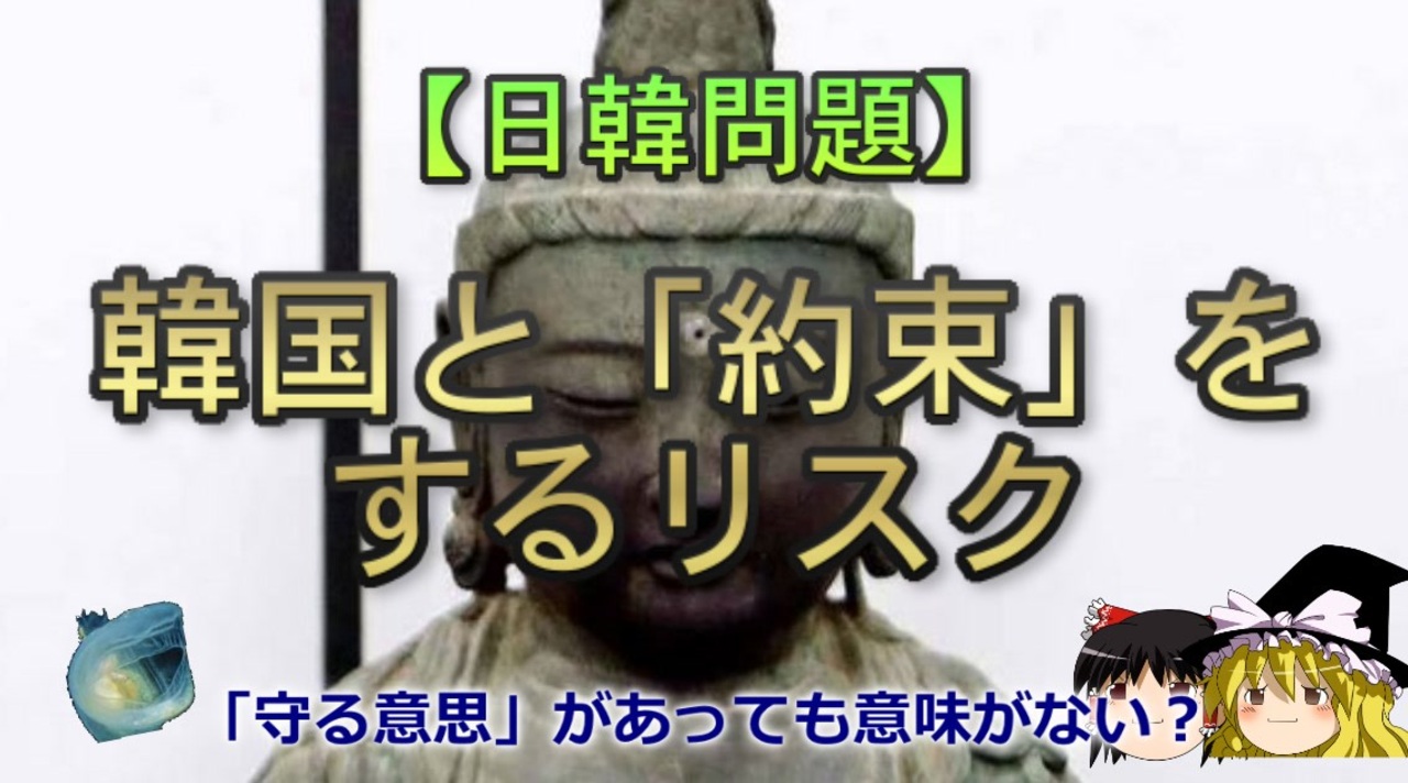 さて、本日は韓国と「約束」を行う場合に、日本人が勘違いし易い事例について扱っていきます。<br>完熟どようびは秋の味覚<br><br>本日のブログ記事<br><a href="https://oogchib.hateblo.jp/entry/2024/11/03/210000" target="_blank" rel="noopener nofollow">https://oogchib.hateblo.jp/entry/2024/11/03/210000</a><br><br>元記事<br>韓国との「約束」がリスクだらけの理由<br><a href="https://oogchib.hateblo.jp/entry/2024/10/24/012919" target="_blank" rel="noopener nofollow">https://oogchib.hateblo.jp/entry/2024/10/24/012919</a><br><br>関連動画<br>【日韓問題】日韓で異なる「約束」の概念<br><a href="https://www.nicovideo.jp/watch/sm33052716" class="watch">sm33052716</a><br>【日韓問題】韓国独特の「易地思之」<br><a href="https://www.nicovideo.jp/watch/sm31936237" class="watch">sm31936237</a><br><br>関連記事<br>【グローバルアイ】約束を守る国・日本、正義が重要な国・韓国<br>ⓒ 中央日報/中央日報日本語版2019.01.04 06:59<br><a href="https://japanese.joins.com/JArticle/248743" target="_blank" rel="noopener nofollow">https://japanese.joins.com/JArticle/248743</a><br><br><br>引用ソースと動画のテキストをブログ日韓問題(初心者向け)のほうへ掲載しています。<br><br>日韓問題(初心者向け)<br><a href="https://oogchib.hateblo.jp/" target="_blank" rel="noopener nofollow">https://oogchib.hateblo.jp/</a><br><br>暇つぶしにどうぞ<br><a href="http://ooguchib.blog.fc2.com/" target="_blank" rel="noopener nofollow">http://ooguchib.blog.fc2.com/</a> <br><br>X(旧twitter) @ooguchib<br><a href="https://x.com/ooguchib" target="_blank" rel="noopener nofollow">https://x.com/ooguchib</a><br><br>前 <a href="https://www.nicovideo.jp/watch/sm44256859" class="watch">sm44256859</a> <a href="https://www.nicovideo.jp/mylist/59069876" target="_blank" rel="noopener">mylist/59069876</a> 次 <a href="https://www.nicovideo.jp/watch/sm44306148" class="watch">sm44306148</a><br><br>番外編マイリスト<br><a href="https://www.nicovideo.jp/mylist/62992608" target="_blank" rel="noopener">mylist/62992608</a><br><br>YouTube版<br><a href="https://youtu.be/oWx8_30gyDE" target="_blank" rel="noopener nofollow">https://youtu.be/oWx8_30gyDE</a><br>