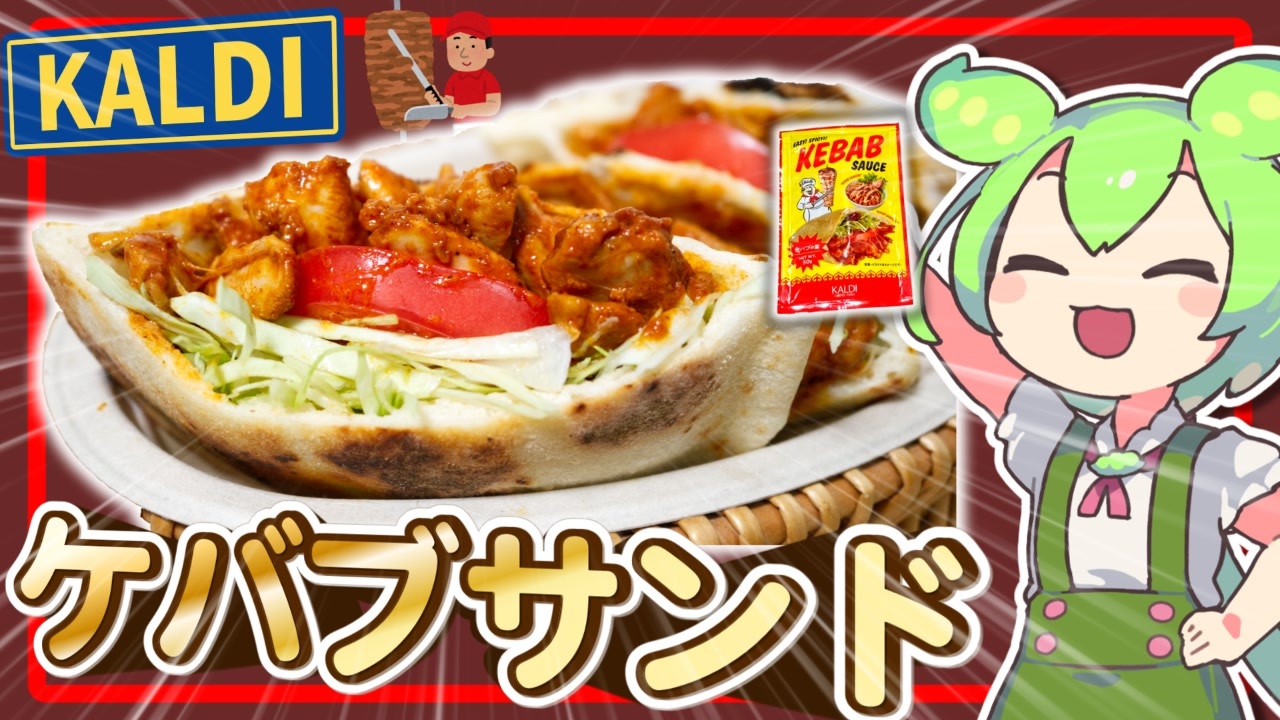 ずんだもん:「今回は、カルディのお手軽ソースを使って屋台で大きなお肉が回っていて美味しそうなケバブサンドを作るのだ!あと伸びるアイスのトルコアイスも100均の材料で作ってみたのだ!」<br>めたん:「フライパンでピタパン作り楽しかったわね!」 <br>WhiteCUL:「トルコアイス楽しかったね!」<br><br>(11月17日)なんと!この動画がニコニコ運営のおすすめとして紹介してもらっているのだ!!選んで頂いて本当に嬉しいのだ!!これからも面白いと思ってもらえる動画の投稿をしていくのでよろしくなのだ!また見てね!ゆる~く楽しんでくれると嬉しいのだ(^^♪!<br><br>良かったら他の動画も見てみてね!<br><span style="font-size: 16px;"><strong>チャンネルページ</strong></span><br><a href="https://www.nicovideo.jp/user/132178379" target="_blank" rel="noopener nofollow">https://www.nicovideo.jp/user/132178379</a><br><br><strong>使わせてもらった素材</strong><br>いつも素材を使わせてもらって、この動画を作っているのだ!<br>素晴らしい素材を作ってくれてありがとうなのだ!<br><br>使用した音声<br>VOICEVOX<br><a href="https://voicevox.hiroshiba.jp/" target="_blank" rel="noopener nofollow">https://voicevox.hiroshiba.jp/</a><br>VOICEVOX:ずんだもん<br>VOICEVOX:四国めたん<br>VOICEVOX:WhiteCUL<br>立ち絵<br>坂本アヒル 様<br><a href="https://seiga.nicovideo.jp/user/illust/97452727" target="_blank" rel="noopener nofollow">https://seiga.nicovideo.jp/user/illust/97452727</a><br><br>お借りした素材サイト<br>□ニコニ・コモンズ 様 <br> <a href="https://commons.nicovideo.jp/" target="_blank" rel="noopener nofollow">https://commons.nicovideo.jp/</a><br>□DOVA-SYNROME 様 <br><a href="https://dova-s.jp/" target="_blank" rel="noopener nofollow">https://dova-s.jp/</a><br>□魔王魂<br><a href="https://maou.audio/" target="_blank" rel="noopener nofollow">https://maou.audio/</a><br>□効果音ラボ 様 <br><a href="https://soundeffect-lab.info/" target="_blank" rel="noopener nofollow">https://soundeffect-lab.info/</a><br>□テロップ.サイト 様<br><a href="https://telop.site/" target="_blank" rel="noopener nofollow">https://telop.site/</a><br>□いらすとや 様<br><a href="https://www.irasutoya.com/" target="_blank" rel="noopener nofollow">https://www.irasutoya.com/</a><br>□フリーBGM MOMIZizm MUSiC <a href="https://music.storyinvention.com/" target="_blank" rel="noopener nofollow">https://music.storyinvention.com/</a><br>□KAMATAMAGO.COM様<br><a href="https://kamatamago.com/" target="_blank" rel="noopener nofollow">https://kamatamago.com/</a><br><br>編集ソフト<br>ゆっくりムービーメーカー4