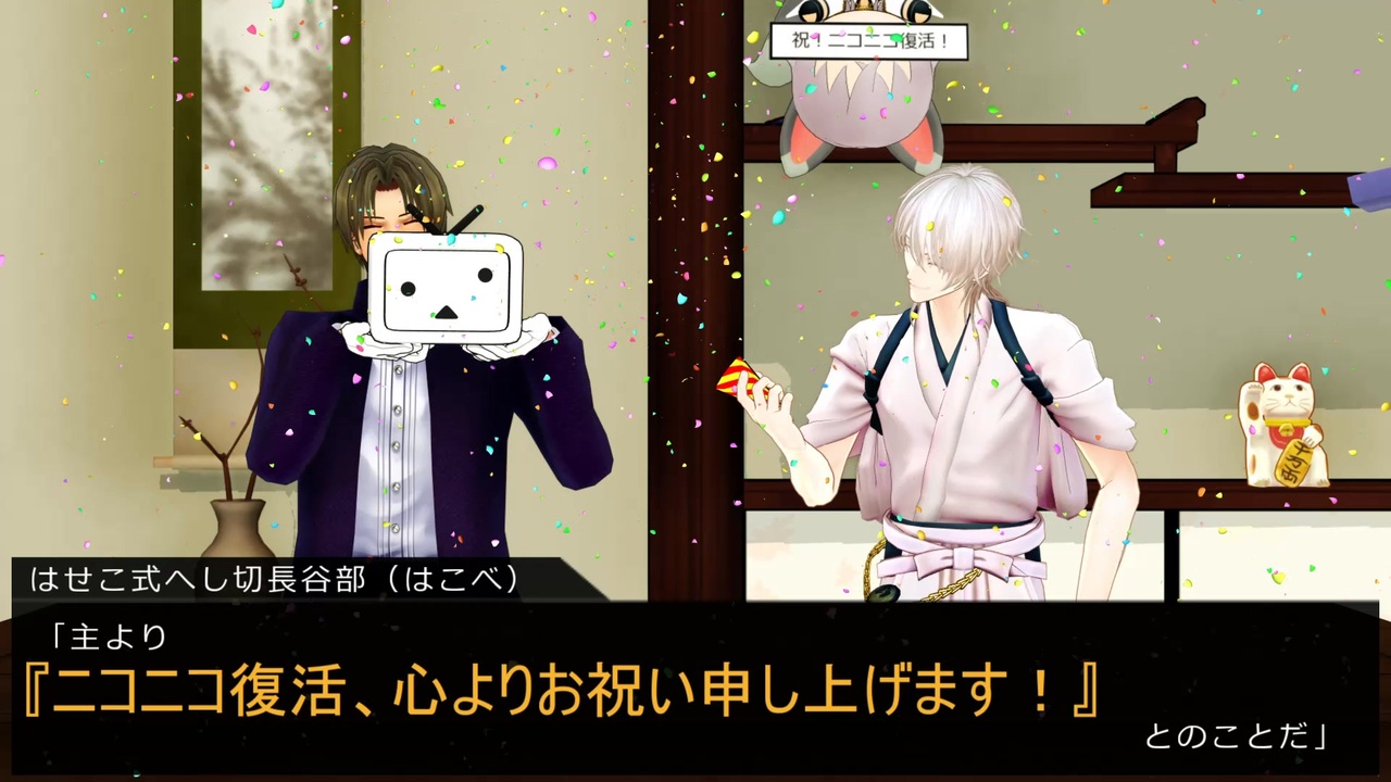 <span style="font-size: 16px;"><strong>ニコニコ復活&MMD秋祭り開催おめでとうございます!</strong></span><br>記念に全フルモーション寸劇とモーション配布に挑戦しました。<br><u>へし切長谷部と山姥切長義の</u><strong><u>専用</u></strong><u>戦闘モーション</u>となります。<br>少しでも皆さんの動画作成の一助になれば幸いです。<br><br>オンライン規約<br><a href="https://privatter.net/p/11252081" target="_blank" rel="noopener nofollow">https://privatter.net/p/11252081</a><br><br>配布先(パスは動画に記載済です)<br><a href="https://bowlroll.net/file/326939" target="_blank" rel="noopener nofollow">https://bowlroll.net/file/326939</a><br><br><br>【注意】この動画は、<span style="color: #ff0000; font-size: 16px;"><strong>何でも許せる方向き</strong></span>です。<br><br>※<strong>複数の同キャラ別式モデル</strong>が<strong>同時に登場</strong>します。<br>※二次創作/雰囲気動画。<br>※同キャラでも<strong>個体差があります</strong>。<br>※当本丸MMD本丸設定準拠の<strong>平和軸本丸の話</strong>です。シリアス軸本丸のシリアス要素は皆無です。<br>※お借りした全てのものへの不適切な発言や迷惑行為を禁止します<br><br>モショはお借りした二つのモショ以外、全部自力作成のため、カックカクです。<br>それでも今回は完走したので、初心者の成長に優しい目で見て頂けると嬉しいです。<br><br><br>【2025/03/03 追記】<br>Ageha様、mt_pan様、precious Rose様、ちとせ様、あい様、クク81様、かなえ様、【 】様<br>どんぐり様、ぽんた様、ゆきっくま様、氷翠 雪華様、くまち様、シアン様、こうき様<br>ねね・にゃんぱらり様、綾弥浅葱様、なる松様、haruka様、若竹丸様、ゆう様、きた様<br>じゅーいち様、るか様、みくろ様、ちひろ様、筑前国審神者様、WhitePlatz様<br><br>動画広告ありがとうございます!<br>またコメントやいいねをくださった皆様もありがとうございます、励みになります!<br><br /><strong>※転載禁止/Reproduction is prohibited./禁止私自转载<br>※AI学習禁止</strong><br>