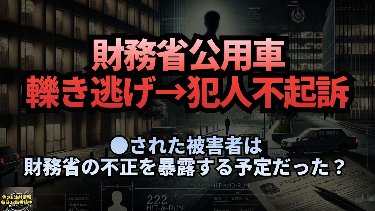全く報道されなくなったが<br>少し前に財務省の公用車が轢き逃げで、ある人物を殺害したのに不起訴。<br><br>それに轢き殺された相手は「長期保護管理権委譲渡契約方式資金」という資料を持ってて、財務書の不正を暴こうとしていた人物。<br><br>これが日本政府のやり方なんです。<br><br><a href="https://x.com/Parsonalsecret/status/1853979970772828264?t=vt790bQmP9563veBetsFMg&s=19" target="_blank" rel="noopener nofollow">https://x.com/Parsonalsecret/status/1853979970772828264?t=vt790bQmP9563veBetsFMg&s=19</a><br><br><br>【運転のプロに何が?】財務省公用車死亡ひき逃げ事件 逃走後「助けてくれー」と大暴れ…運転手の男を逮捕 東京・永田町<br><a href="https://web.archive.org/web/20240624070756/https://www.fnn.jp/articles/-/718364" target="_blank" rel="noopener nofollow">https://web.archive.org/web/20240624070756/https://www.fnn.jp/articles/-/718364</a><br><br><br>財務省<br>公用車<br>ひき逃げ<br>不起訴<br>ひき逃げ事件<br>不正<br>長期保護管理権委譲渡契約方式資金<br>不都合な真実<br>暴露<br>口封じ<br>隠蔽工作<br><br>報道しないメディア<br><br><br />著作権、肖像権に配慮して作成しております。<br><br>◆気になったニュースの台本!?<br>メモ代わりに作った台本をそのままあげてます<br><a href="https://keiichiro8140.hatenablog.com/." target="_blank" rel="noopener nofollow">https://keiichiro8140.hatenablog.com/.</a><br><br><br>ここからはシリーズ紹介<br><br><br>◆ ワクチン解毒・デトックス<br><a href="https://x.gd/fZweg" target="_blank" rel="noopener nofollow">https://x.gd/fZweg</a><br><br>◆ウイリアム・マキス博士のがん治療(イベルメクチン・フェンベンダゾール等)<br><a href="https://x.gd/AtFYS" target="_blank" rel="noopener nofollow">https://x.gd/AtFYS</a><br><br>◆予防接種健康被害救済制度<br><a href="https://x.gd/0xK9x" target="_blank" rel="noopener nofollow">https://x.gd/0xK9x</a><br><br>◆気になったニュース #1501~<br><br>◆ 【ショートver】気になったニュース<br><a href="https://x.gd/7MxXC" target="_blank" rel="noopener nofollow">https://x.gd/7MxXC</a><br><br>◆ 気になったニュース #1001~<br><a href="https://x.gd/Lp8gv" target="_blank" rel="noopener nofollow">https://x.gd/Lp8gv</a><br><br>◆ 気になったニュース #501~<br><a href="https://x.gd/EmbS4" target="_blank" rel="noopener nofollow">https://x.gd/EmbS4</a><br><br>◆ 気になったニュース #1~#500<br><a href="https://x.gd/uPhNb" target="_blank" rel="noopener nofollow">https://x.gd/uPhNb</a><br><br>◆ X(旧Twitter)・テレグラムで気になった情報<br><a href="https://x.gd/YG6FT" target="_blank" rel="noopener nofollow">https://x.gd/YG6FT</a><br><br>◆ 日比谷5万人パレードデ⚪生放送アーカイブ動画<br><a href="https://x.gd/3CHJv" target="_blank" rel="noopener nofollow">https://x.gd/3CHJv</a><br><br>◆日比谷5万人パレード⚪モのマイリスト作ってみました<br><a href="https://nico.ms/mylist/76828848?ref=sp_other" target="_blank" rel="noopener nofollow">https://nico.ms/mylist/76828848?ref=sp_other</a><br><br>◆3.30 令和の百姓⚪⚪<br><a href="https://www.nicovideo.jp/series/511791?ref=garage_share_other" target="_blank" rel="noopener nofollow">https://www.nicovideo.jp/series/511791?ref=garage_share_other</a><br><br>◆ 及川幸久さんの【XNEWS】シリーズ<br><a href="https://x.gd/3k78K" target="_blank" rel="noopener nofollow">https://x.gd/3k78K</a><br><br>◆これまでの動画<a href="https://x.gd/sPXoJ" target="_blank" rel="noopener nofollow">https://x.gd/sPXoJ</a><br><br>◆もしも(BAN)の時のためのマイリンク集<a href="https://lit.link/K-16_News44" target="_blank" rel="noopener nofollow">https://lit.link/K-16_News44</a><br><br>