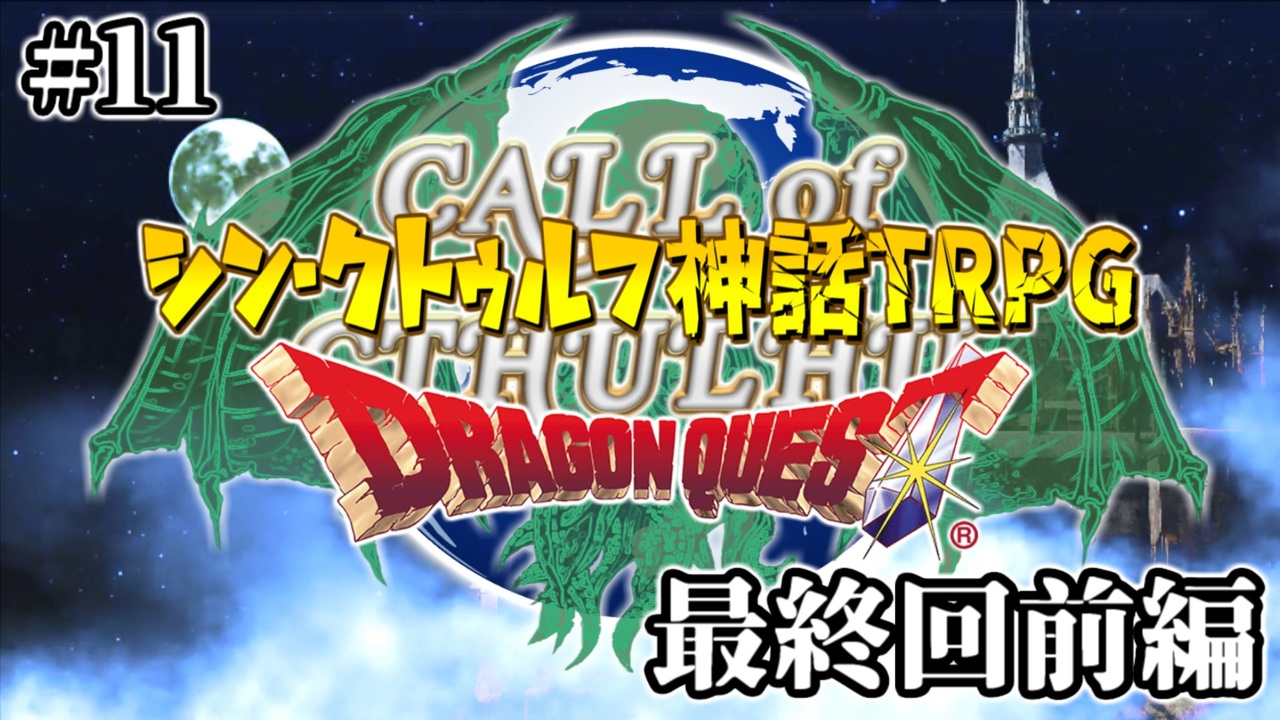 <strong>※この動画は、クトゥルフ神話TRPG7版のルールブックを使用しています。</strong><br><br>最終回を前編と後編に分けました。<br><br>前回:<a href="https://www.nicovideo.jp/watch/sm43675424" class="watch">sm43675424</a> 次回:<a href="https://www.nicovideo.jp/watch/sm44847748" class="watch">sm44847748</a><br><br>シナリオ名『ドラゴンクエスト』:オリジナル制作(KP/地球くん)<br>当シリーズ:<a href="https://www.nicovideo.jp/series/407051" target="_blank" rel="noopener">series/407051</a><br>前シリーズ『かんかんだら』:<a href="https://www.nicovideo.jp/series/327372" target="_blank" rel="noopener">series/327372</a><br><br>◆X (旧Twitter)【 <a href="https://twitter.com/1Gpuf9SuGO9TinP" target="_blank" rel="noopener nofollow">https://twitter.com/1Gpuf9SuGO9TinP</a> 】<br>◆YouTube【 <a href="https://www.youtube.com/channel/UCooMVCKd-BDBcgewORE-7xg" target="_blank" rel="noopener nofollow">https://www.youtube.com/channel/UCooMVCKd-BDBcgewORE-7xg</a> 】<br><br>BGM提供先:DOVA-SYNDROME様、ドラクエシリーズ<br>ED素材提供先:ニコニコモンズ、騒音のない世界様<br>背景素材:みんちりえ様<br><br>本作は、「 株式会社アークライト 」及び「株式会社KADOKAWA」が権利を有する『新クトゥルフ神話TRPG』の二次創作物です。<br><br>Call of Cthulhu is copyright ©1981, 2015, 2019 by Chaosium Inc. ;all rights reserved. Arranged by Arclight Inc.<br>Call of Cthulhu is a registered trademark of Chaosium Inc.<br>PUBLISHED BY KADOKAWA CORPORATION 「新クトゥルフ神話TRPG ルールブック」