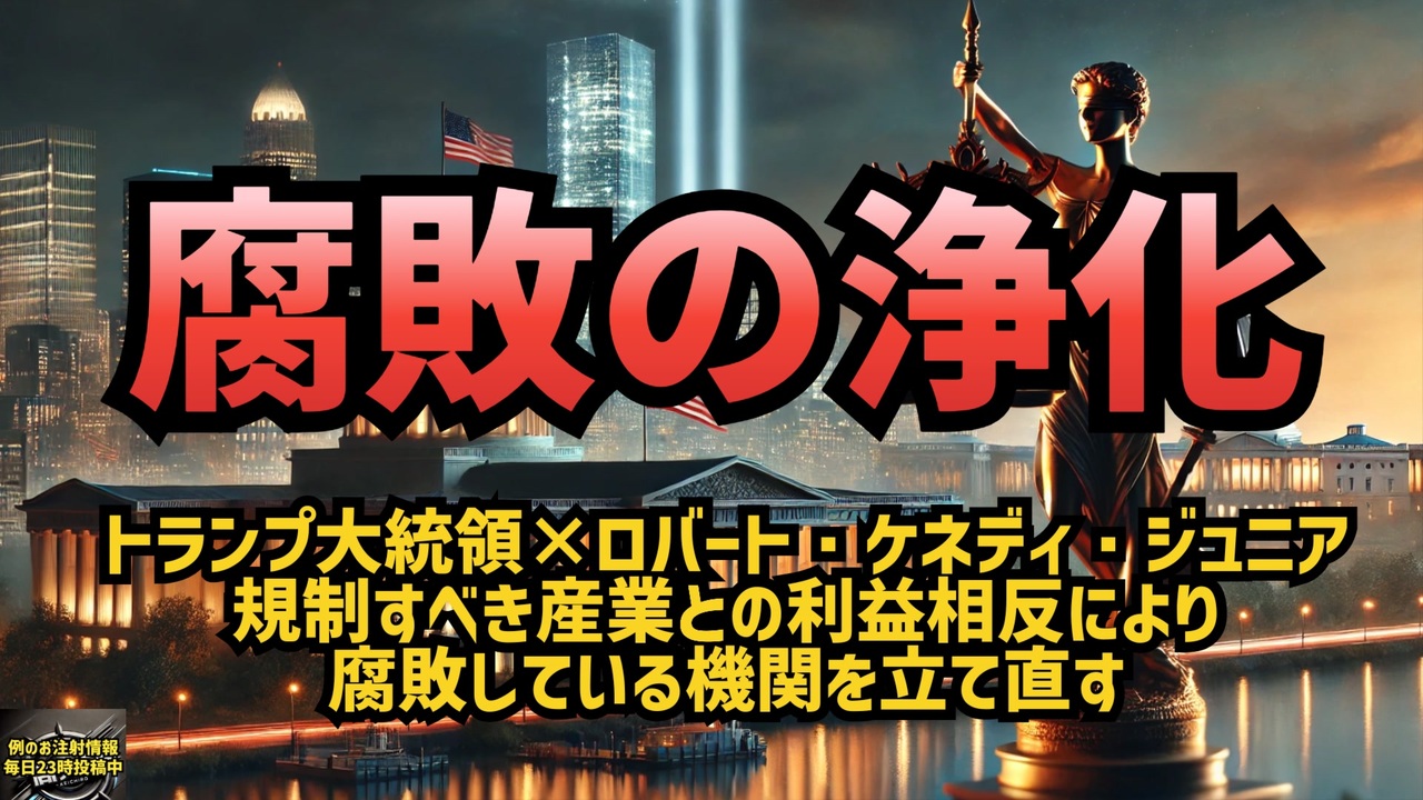 「速報です!ケネディ氏が語るトランプ大統領からの指示。ドナルド・トランプ大統領は、ロバート・ケネディ・ジュニアを公衆衛生機関の責任者に任命すると言っています。<br>3つのことを求めました。<br><br>まず1つ目は、これらの機関に根深く存在する腐敗の一掃です。製薬業界や食品業界といった、もともと規制の対象であるべき産業との利益相反を解消し、政府の保健機関がこれらの企業に左右されないようにします。<br><br>次に2つ目として、トランプ氏はこれらの機関をかつての栄光に戻すことを求めています。証拠に基づいた科学により、公平で確かな医療を提供するゴールドスタンダード、つまり信頼される水準に戻すことが目標です。<br><br>そして3つ目が、アメリカ国民の健康の回復です。トランプ氏は、2年以内に子どもたちを含むアメリカ人の慢性疾患が目に見えて減少するという、具体的で測定可能な結果を求めています。彼は、アメリカを再び健康な国にしたいと強く望んでいるのです。<br><br>トランプ大統領とケネディ氏の連携が、今後どのように展開されるのか、注目です。」<br><br><br><br>Jackケネディ速砲<br>【速報】トランプ大統領は私に3つのことを要求しました。<br>1. 政府の保健機関における腐敗を一掃する。<br>2. これらの機関を、ゴールドスタンダードで証拠に基づいた科学の豊かな伝統に戻します。<br>3. 慢性疾患の蔓延を終わらせ、アメリカを再び健康な国にする。<br>#トランプ大統領 <br>#RFKJr<br><a href="https://x.com/jack_hikuma/status/1854283047241486718?t=vn4RzpA6PJyDPz2ewjMqNA&s=19" target="_blank" rel="noopener nofollow">https://x.com/jack_hikuma/status/1854283047241486718?t=vn4RzpA6PJyDPz2ewjMqNA&s=19</a><br><br><br>トランプ大統領<br>ロバート・ケネディ・ジュニア<br>アメリカ<br>公衆衛生改革<br>腐敗<br>利益相反<br>慢性疾患<br>製薬会社<br>食品添加物<br>ワクチン<br>浄化<br><br>「健康な国の未来」<br><br><br />著作権、肖像権に配慮して作成しております。<br><br>◆気になったニュースの台本!?<br>メモ代わりに作った台本をそのままあげてます<br><a href="https://keiichiro8140.hatenablog.com/." target="_blank" rel="noopener nofollow">https://keiichiro8140.hatenablog.com/.</a><br><br><br>ここからはシリーズ紹介<br><br><br>◆ ワクチン解毒・デトックス<br><a href="https://x.gd/fZweg" target="_blank" rel="noopener nofollow">https://x.gd/fZweg</a><br><br>◆ウイリアム・マキス博士のがん治療(イベルメクチン・フェンベンダゾール等)<br><a href="https://x.gd/AtFYS" target="_blank" rel="noopener nofollow">https://x.gd/AtFYS</a><br><br>◆予防接種健康被害救済制度<br><a href="https://x.gd/0xK9x" target="_blank" rel="noopener nofollow">https://x.gd/0xK9x</a><br><br>◆気になったニュース #1501~<br><br>◆ 【ショートver】気になったニュース<br><a href="https://x.gd/7MxXC" target="_blank" rel="noopener nofollow">https://x.gd/7MxXC</a><br><br>◆ 気になったニュース #1001~<br><a href="https://x.gd/Lp8gv" target="_blank" rel="noopener nofollow">https://x.gd/Lp8gv</a><br><br>◆ 気になったニュース #501~<br><a href="https://x.gd/EmbS4" target="_blank" rel="noopener nofollow">https://x.gd/EmbS4</a><br><br>◆ 気になったニュース #1~#500<br><a href="https://x.gd/uPhNb" target="_blank" rel="noopener nofollow">https://x.gd/uPhNb</a><br><br>◆ X(旧Twitter)・テレグラムで気になった情報<br><a href="https://x.gd/YG6FT" target="_blank" rel="noopener nofollow">https://x.gd/YG6FT</a><br><br>◆ 日比谷5万人パレードデ⚪生放送アーカイブ動画<br><a href="https://x.gd/3CHJv" target="_blank" rel="noopener nofollow">https://x.gd/3CHJv</a><br><br>◆日比谷5万人パレード⚪モのマイリスト作ってみました<br><a href="https://nico.ms/mylist/76828848?ref=sp_other" target="_blank" rel="noopener nofollow">https://nico.ms/mylist/76828848?ref=sp_other</a><br><br>◆3.30 令和の百姓⚪⚪<br><a href="https://www.nicovideo.jp/series/511791?ref=garage_share_other" target="_blank" rel="noopener nofollow">https://www.nicovideo.jp/series/511791?ref=garage_share_other</a><br><br>◆ 及川幸久さんの【XNEWS】シリーズ<br><a href="https://x.gd/3k78K" target="_blank" rel="noopener nofollow">https://x.gd/3k78K</a><br><br>◆これまでの動画<a href="https://x.gd/sPXoJ" target="_blank" rel="noopener nofollow">https://x.gd/sPXoJ</a><br><br>◆もしも(BAN)の時のためのマイリンク集<a href="https://lit.link/K-16_News44" target="_blank" rel="noopener nofollow">https://lit.link/K-16_News44</a><br><br>