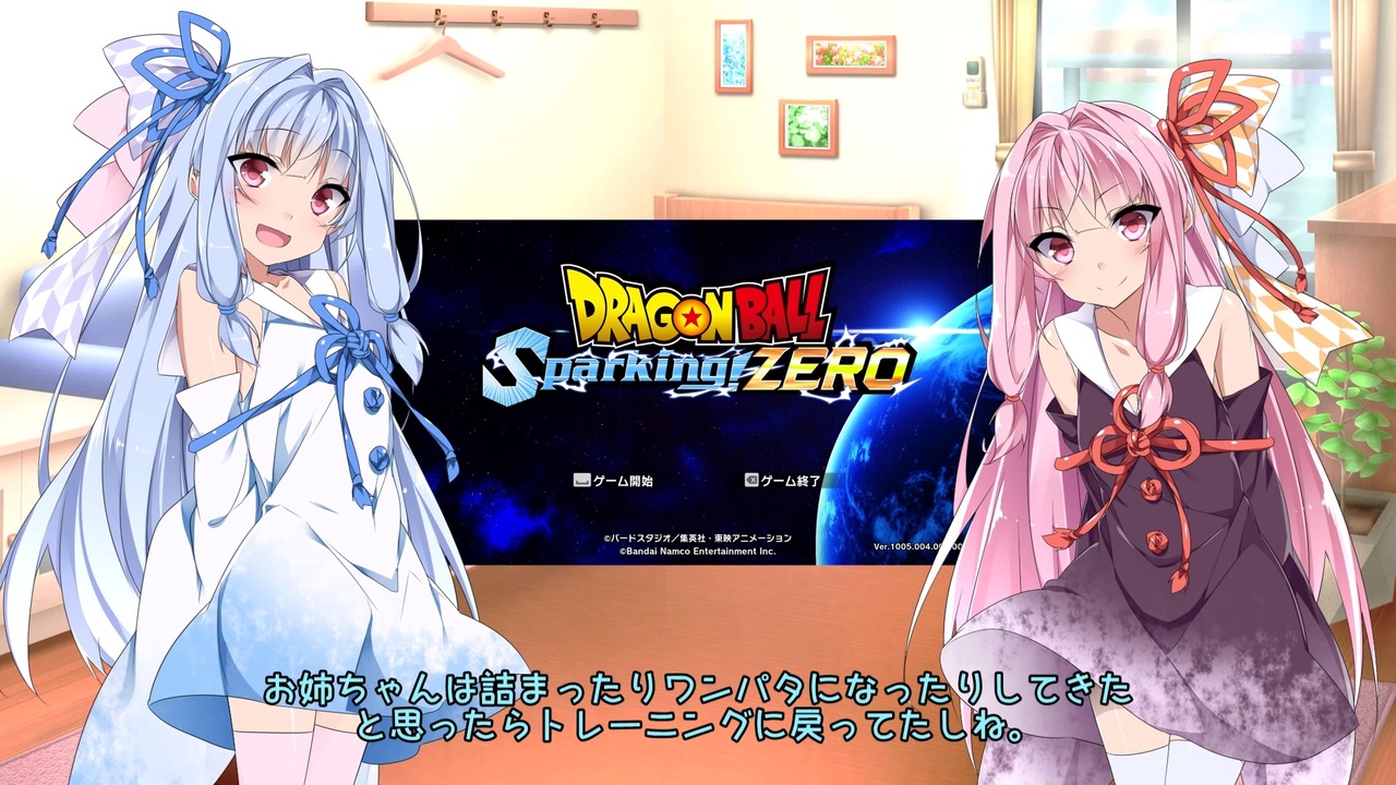 新作始めます。<br><br>思ったより早く帰ってきました。<br>今度はドラゴンボールZスパーキングゼロです。<br>元々予定してたのは別の作品の発売待ちでしたが、<br>他の方の動画とか見てやってみたくなったのでやりました。<br><br>余談ですが、最初タイトルはボイロ達とスパーキング!<br>にしようと思いましたが、何やらいかがわしい感じがしたので…やめました。<br><br>///////////////////////////////////////////////<br>使用させていただいたソフト、素材提供元様一覧<br><br>立ち絵<br>東北きりたん: えびふりゃ 様(<a href="https://seiga.nicovideo.jp/seiga/im11043018" target="_blank" rel="noopener">im11043018</a>)<br>春日部つむぎ: 春日部つむぎ公式 様 (<a href="https://seiga.nicovideo.jp/seiga/im10842587" target="_blank" rel="noopener">im10842587</a>)<br>琴葉茜:MtU様 (<a href="https://seiga.nicovideo.jp/seiga/im8212761" target="_blank" rel="noopener">im8212761</a>)<br>琴葉葵:MtU様 (<a href="https://seiga.nicovideo.jp/seiga/im9664585" target="_blank" rel="noopener">im9664585</a>)<br>さとうささら:しりんだーふれいる様(<a href="https://seiga.nicovideo.jp/seiga/im10852558" target="_blank" rel="noopener">im10852558</a>)<br>弦巻マキ: ヤッペン 様(<a href="https://seiga.nicovideo.jp/seiga/im10570492" target="_blank" rel="noopener">im10570492</a>)<br>WhiteCUL: moiky様(<a href="https://seiga.nicovideo.jp/seiga/im11047926" target="_blank" rel="noopener">im11047926</a>)<br><br>使用ソフト<br>VOICEROID+ EX:東北きりたん<br>VOICEVOX:春日部つむぎ<br>A.I.Voice:琴葉茜・葵<br>CeVIO AI:さとうささら<br>VOICEROID+ 民安ともえ EX:弦巻マキ<br>VOICEVOX:WhiteCUL