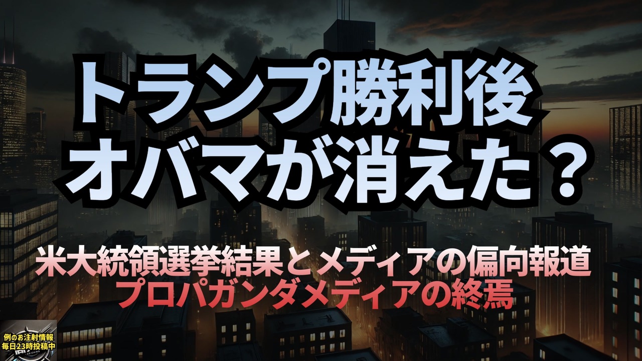 イーロンマスク<br>この選挙の現実は□(旧Twitter)で誰の目にも明らかでしたが、大手メディアの多くは執拗に嘘を伝え続けました。<br>「あなたが今、メディアです」<br>どうか□であなたの考えや観察を投稿し、他の人が間違っている時には正してあげてください。少なくとも世界の中で真実が見つかる場を1つ持てるようにしましょう<br><a href="https://x.gd/ffb0y" target="_blank" rel="noopener nofollow">https://x.gd/ffb0y</a><br><br><br>7月以来、メディアのトランプに対する報道は85%がネガティブ、ハリスに対する報道はほぼ80%ポジティブ<br><br>それでもトランプ勝利<br><br>マスメディアによるプロパガンダの時代は終わった<br><br>①X <a href="https://x.gd/GHC1F" target="_blank" rel="noopener nofollow">https://x.gd/GHC1F</a><br>②記事 <a href="https://x.gd/tKli3" target="_blank" rel="noopener nofollow">https://x.gd/tKli3</a><br><br><br>注目すべき点として、「ビリオネア」と呼ばれる人物の多くはトランプではなくハリスを支持しており、彼女は約50%も多くの資金を集めました。それでもアメリカは、選挙は金だけで決まるものではないと示し、トランプに圧倒的な勝利を与えました!<br><a href="https://x.gd/Y35To" target="_blank" rel="noopener nofollow">https://x.gd/Y35To</a><br><br><br>オバマ元大統領が消息不明との報道<br>ハリスが昨夜敗北して以来、オバマのチームはどのメディアからの問い合わせにも応じていません。彼はハリスの最大の支持者であり、他のどの民主党政治家よりも多くの集会に参加していたため、アメリカ国民は彼のコメントを待ち望んでいます。<br><a href="https://x.gd/EuqMU" target="_blank" rel="noopener nofollow">https://x.gd/EuqMU</a><br><br><br>ニュージャージー州議会議員のジャメル ホリーは、オバマ夫妻がプライベートジェットでアメリカから逃亡したと主張している<br><a href="https://x.gd/f3T3T" target="_blank" rel="noopener nofollow">https://x.gd/f3T3T</a><br><br><br>ジョージ・ソロスとビル・ゲイツは、「パンデミック」前に「迅速なCovidテスト」を作る会社「Mologic Ltd」を持っていました<br>今こそ「Covid」に対する説明責任が必要です<br>「パンデミック計画者」は起訴されるべきです<br><a href="https://x.gd/pIBh7" target="_blank" rel="noopener nofollow">https://x.gd/pIBh7</a><br><br><br>ビル・ゲイツがMODERNAに資金提供<br>ビル・ゲイツは武漢ウイルス研究所の機能獲 得研究に資金を提供した(COVID-19が作ら れた場所)<br><a href="https://x.gd/WhrrK" target="_blank" rel="noopener nofollow">https://x.gd/WhrrK</a><br><br><br>イーロン・マスク<br>大統領選挙<br>トランプ大統領<br>カマラ・ハリス<br>大手メディアの嘘<br>プロパガンダ<br>パンデミック<br>バラク・オバマ<br>ビル・ゲイツ<br>ジョージ・ソロス<br>偏向報道<br><br><br>「真実を追求する場」<br><br><br />著作権、肖像権に配慮して作成しております。<br><br>◆気になったニュースの台本!?<br>メモ代わりに作った台本をそのままあげてます<br><a href="https://keiichiro8140.hatenablog.com/." target="_blank" rel="noopener nofollow">https://keiichiro8140.hatenablog.com/.</a><br><br><br>ここからはシリーズ紹介<br><br><br>◆ ワクチン解毒・デトックス<br><a href="https://x.gd/fZweg" target="_blank" rel="noopener nofollow">https://x.gd/fZweg</a><br><br>◆ウイリアム・マキス博士のがん治療(イベルメクチン・フェンベンダゾール等)<br><a href="https://x.gd/AtFYS" target="_blank" rel="noopener nofollow">https://x.gd/AtFYS</a><br><br>◆予防接種健康被害救済制度<br><a href="https://x.gd/0xK9x" target="_blank" rel="noopener nofollow">https://x.gd/0xK9x</a><br><br>◆気になったニュース #1501~<br><br>◆ 【ショートver】気になったニュース<br><a href="https://x.gd/7MxXC" target="_blank" rel="noopener nofollow">https://x.gd/7MxXC</a><br><br>◆ 気になったニュース #1001~<br><a href="https://x.gd/Lp8gv" target="_blank" rel="noopener nofollow">https://x.gd/Lp8gv</a><br><br>◆ 気になったニュース #501~<br><a href="https://x.gd/EmbS4" target="_blank" rel="noopener nofollow">https://x.gd/EmbS4</a><br><br>◆ 気になったニュース #1~#500<br><a href="https://x.gd/uPhNb" target="_blank" rel="noopener nofollow">https://x.gd/uPhNb</a><br><br>◆ X(旧Twitter)・テレグラムで気になった情報<br><a href="https://x.gd/YG6FT" target="_blank" rel="noopener nofollow">https://x.gd/YG6FT</a><br><br>◆ 日比谷5万人パレードデ⚪生放送アーカイブ動画<br><a href="https://x.gd/3CHJv" target="_blank" rel="noopener nofollow">https://x.gd/3CHJv</a><br><br>◆日比谷5万人パレード⚪モのマイリスト作ってみました<br><a href="https://nico.ms/mylist/76828848?ref=sp_other" target="_blank" rel="noopener nofollow">https://nico.ms/mylist/76828848?ref=sp_other</a><br><br>◆3.30 令和の百姓⚪⚪<br><a href="https://www.nicovideo.jp/series/511791?ref=garage_share_other" target="_blank" rel="noopener nofollow">https://www.nicovideo.jp/series/511791?ref=garage_share_other</a><br><br>◆ 及川幸久さんの【XNEWS】シリーズ<br><a href="https://x.gd/3k78K" target="_blank" rel="noopener nofollow">https://x.gd/3k78K</a><br><br>◆これまでの動画<a href="https://x.gd/sPXoJ" target="_blank" rel="noopener nofollow">https://x.gd/sPXoJ</a><br><br>◆もしも(BAN)の時のためのマイリンク集<a href="https://lit.link/K-16_News44" target="_blank" rel="noopener nofollow">https://lit.link/K-16_News44</a><br><br>
