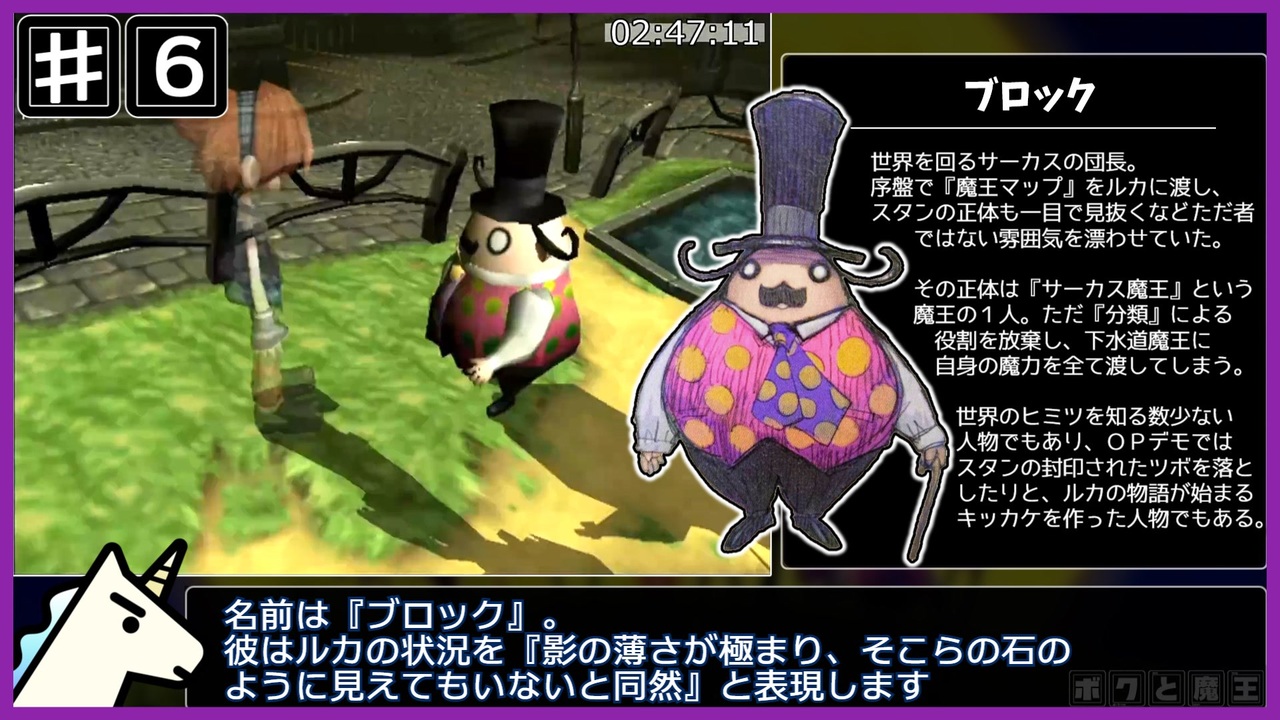プレイステーション2『ボクと魔王』any%RTA、解説つき動画のパート6です。<br><br>重要なイベントの別撮りを流そうとしたら40分越えそうだったので分割しました。<br>去年11月に買ったPCパーツの分割払いがようやく終わりました。……長かった。<br><br>part.5→<a href="https://www.nicovideo.jp/watch/sm44233926" class="watch">sm44233926</a><br>part.7→<a href="https://www.nicovideo.jp/watch/sm44326859" class="watch">sm44326859</a>(11/16 21時公開)。進捗はTwitter(現:X)@Nagisa381rtaで<br><br>走ったRTAのpart.1まとめ→<a href="https://www.nicovideo.jp/mylist/73222388" target="_blank" rel="noopener">mylist/73222388</a><br>RTA全部まとめ→<a href="https://www.nicovideo.jp/mylist/72786007" target="_blank" rel="noopener">mylist/72786007</a><br><br>無編集版→<a href="https://www.youtube.com/watch?v=-WYo3dm4daU&t=16550s" target="_blank" rel="noopener nofollow">https://www.youtube.com/watch?v=-WYo3dm4daU&t=16550s</a><br>PS4映像の引用元→<a href="https://youtu.be/JiAd-0sIHjc?si=ETHGdGKzUZgs6ECv" target="_blank" rel="noopener nofollow">https://youtu.be/JiAd-0sIHjc?si=ETHGdGKzUZgs6ECv</a><br><br>▽レギュレーション<br>タイマー開始:タイトル画面で『NEW GAME』を選択した瞬間<br>タイマー終了:ラスボスを倒しアイテムが出現した瞬間<br><br>▽プレイ環境<br>PlayStation2 SCPH-50000実機<br>HDMI出力:Pound Tchnology HD Link Cable for PS2&PS1<br>キャプチャーボード:TreasLin HSV321とAVerMedia LIVE GAMER EXTREME 3<br>録画ソフト:OBS Studio<br><br>〇Twitter(現:X)→@Nagisa381rta<br><br>〇欲しいものリスト<br>→<a href="https://www.amazon.jp/hz/wishlist/ls/1S72L30BVRILK?ref_=wl_share" target="_blank" rel="noopener nofollow">https://www.amazon.jp/hz/wishlist/ls/1S72L30BVRILK?ref_=wl_share</a><br><br>〇今までの調査結果や攻略法をまとめた個人wikiを作りました<br>→<a href="https://w.atwiki.jp/nagisa381rta/" target="_blank" rel="noopener nofollow">https://w.atwiki.jp/nagisa381rta/</a>