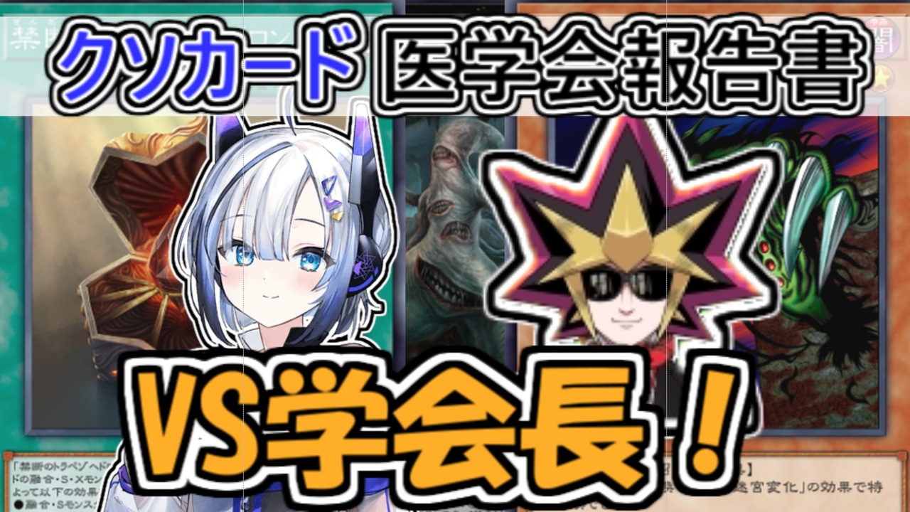いあ!いあ!<br><br>偉大なるあまくだり氏の診療所→<a href="https://www.nicovideo.jp/user/82678858/series/321504?ref=user_series" target="_blank" rel="noopener nofollow">https://www.nicovideo.jp/user/82678858/series/321504?ref=user_series</a><br><br>良い医者を探してたんだ・・・<br>非公式クソカード医学会サーバー→<a href="https://discord.gg/pejHy5mQFT" target="_blank" rel="noopener nofollow">https://discord.gg/pejHy5mQFT</a><br><br>効果音:ニコニ・コモンズ 効果音ラボ オトロジック<br><br>立ち絵:シャドウ商事 <a href="https://seiga.nicovideo.jp/seiga/im11041480" target="_blank" rel="noopener nofollow">https://seiga.nicovideo.jp/seiga/im11041480</a><br><br>出演:あまくだり No.7(VOICEVOX) ずんだもん(VOICEVOX)<br><br>BGM:ポケットサウンド<br><br>楽曲:『熱き決闘者たち』<br>作曲:光宗 信吉<br>音源作成 the alternatively<br><a href="https://youtu.be/_RtKhTQNKYg" target="_blank" rel="noopener nofollow">https://youtu.be/_RtKhTQNKYg</a><br>本音源は下記サイトよりダウンロードできます。<br>(JASRAC信託楽曲につき有料会員の方のみダウンロード可能)<br>使用に関しての詳細はリンク先にてご確認ください。<br><a href="http://commons.nicovideo.jp/material/nc211262" target="_blank" rel="noopener nofollow">http://commons.nicovideo.jp/material/nc211262</a><br><br>スペシャルサンクス:クソカード医学会の皆様、そして視聴者の皆様