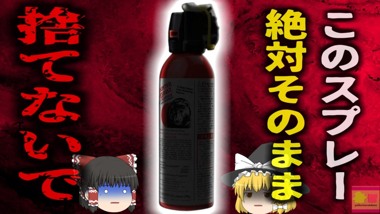 <a href="#" class="seekTime" data-seekTime="00:00" onclick="seekNicoPlayer('#00:00'); return false;">#00:00</a> OP<br><a href="#" class="seekTime" data-seekTime="00:18" onclick="seekNicoPlayer('#00:18'); return false;">#00:18</a> クリーンセンター<br><a href="#" class="seekTime" data-seekTime="00:47" onclick="seekNicoPlayer('#00:47'); return false;">#00:47</a> 視聴上の注意<br><a href="#" class="seekTime" data-seekTime="1:11" onclick="seekNicoPlayer('#1:11'); return false;">#1:11</a> 本編開始<br><a href="#" class="seekTime" data-seekTime="1:32" onclick="seekNicoPlayer('#1:32'); return false;">#1:32</a> 作業員女性の「Aさん」<br><a href="#" class="seekTime" data-seekTime="1:47" onclick="seekNicoPlayer('#1:47'); return false;">#1:47</a> 目の痛み<br><a href="#" class="seekTime" data-seekTime="2:08" onclick="seekNicoPlayer('#2:08'); return false;">#2:08</a> 大きな騒動へ<br><a href="#" class="seekTime" data-seekTime="2:51" onclick="seekNicoPlayer('#2:51'); return false;">#2:51</a> 11人が緊急搬送<br><a href="#" class="seekTime" data-seekTime="3:35" onclick="seekNicoPlayer('#3:35'); return false;">#3:35</a> 「熊よけスプレー」<br><a href="#" class="seekTime" data-seekTime="4:06" onclick="seekNicoPlayer('#4:06'); return false;">#4:06</a> 事の顛末<br><a href="#" class="seekTime" data-seekTime="4:45" onclick="seekNicoPlayer('#4:45'); return false;">#4:45</a> 作業員の勝手な判断<br><a href="#" class="seekTime" data-seekTime="6:06" onclick="seekNicoPlayer('#6:06'); return false;">#6:06</a> その後の謝罪<br><a href="#" class="seekTime" data-seekTime="7:16" onclick="seekNicoPlayer('#7:16'); return false;">#7:16</a> 家庭ごみとして捨ててはいけないものだった<br><a href="#" class="seekTime" data-seekTime="8:30" onclick="seekNicoPlayer('#8:30'); return false;">#8:30</a> 熊よけスプレーの廃棄方法<br><br>引用・出展・参考文献(視聴者提供資料など<br>知床財団 ヒグマのこと<br><a href="https://ishort.ink/MrfA" target="_blank" rel="noopener nofollow">https://ishort.ink/MrfA</a><br>北海道新聞デジタル<br><a href="https://ishort.ink/dZN7" target="_blank" rel="noopener nofollow">https://ishort.ink/dZN7</a><br>Yahoo!ニュース<br><a href="https://ishort.ink/gCCq" target="_blank" rel="noopener nofollow">https://ishort.ink/gCCq</a><br><br />※この動画は過去の事件を知り、現在でも同じことが発生する危険性を再認識、関与しないように促すための動画であり、視聴者を扇動、動揺を誘うためのコンテンツではありません。<br><br>ご要望にお応えして、メンバーシップの開設を行いました。<br>下記URLからも登録可能ですので、ご興味がある方は是非ご参加ください。<br><a href="https://www.youtube.com/channel/UCcT5a1J7XJW7CLYI2RKl4pw/join" target="_blank" rel="noopener nofollow">https://www.youtube.com/channel/UCcT5a1J7XJW7CLYI2RKl4pw/join</a><br><br><br>Twitter<br>→<a href="https://twitter.com/yukkurisurutoko" target="_blank" rel="noopener nofollow">https://twitter.com/yukkurisurutoko</a><br><br>取り急ぎ、簡易的にですがマイリストを作りました。<br>【ゆっくり解説】事故・事件関係紹介リスト <br><a href="https://www.nicovideo.jp/mylist/71034319" target="_blank" rel="noopener nofollow">https://www.nicovideo.jp/mylist/71034319</a><br>【ゆっくり解説】放射線系事故<br><a href="https://www.nicovideo.jp/mylist/71034368" target="_blank" rel="noopener nofollow">https://www.nicovideo.jp/mylist/71034368</a><br>【ゆっくり解説】鉄道系事故・事件関連<br><a href="https://www.nicovideo.jp/mylist/71034379" target="_blank" rel="noopener nofollow">https://www.nicovideo.jp/mylist/71034379</a>