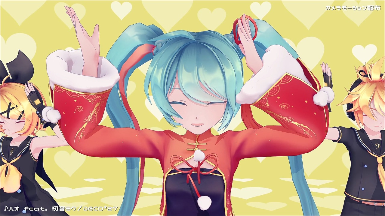心の乙女があれこれ言っちゃうの<br><br>素敵なモーションが配布されましたのでカメラ付けてみました☆彡<br>久々のカメラ制作でしたが、調子に乗って刻みまくってます(;^_^A<br>中華風な曲でしたので、春未来ミクさんに踊ってもらいました!♪<br>ぺんたさんの振付も可愛くて、楽しく踊る3人なのでした(≧▽≦)<br><br>カメラモーション配布しています。<br>><a href="https://bowlroll.net/file/327111" target="_blank" rel="noopener nofollow">https://bowlroll.net/file/327111</a><br>解凍PWは、この説明文の最初のフレーズです。<br>※振付動画の音源にタイミングを合わせています。<br><br>ニコニコでカメラ使って頂きました!<br>><a href="https://commons.nicovideo.jp/works/sm44306461/tree/children" target="_blank" rel="noopener nofollow">https://commons.nicovideo.jp/works/sm44306461/tree/children</a><br>YouTubeでカメラ使って頂きました!<br>><a href="https://www.youtube.com/playlist?list=PLC_uSlhOor2j4pEgOqRgDhBenLvHpE9gi" target="_blank" rel="noopener nofollow">https://www.youtube.com/playlist?list=PLC_uSlhOor2j4pEgOqRgDhBenLvHpE9gi</a><br><br><strong>ミーネンロイマー様、どりんくびあ様、こざくらみる様、シロミミズク様、<br>かさね1010様、ノン様、もみもみ様、ますたー様、sunafukin様、<br>ハルカ@りっぷさん様、Cuirasse様、沈黙の人様、tsukasa様、ゴンちゃん様、<br>Buttogo様、AKIRA君2様、友翔様、翔太MMD(しょーた@友翔)様、<br>春風あいな様、iondx様、Tomo&Syou Other様、群MMD様、<br>Naoki Yamakawa様、広告ありがとうございます!</strong><br><br>楽曲:DECO*27様 <a href="https://www.nicovideo.jp/watch/sm43869395" class="watch">sm43869395</a><br>振付:足太ぺんた様 <a href="https://www.nicovideo.jp/watch/sm43964898" class="watch">sm43964898</a><br>モーション:こざくらみる様 <a href="https://www.nicovideo.jp/watch/sm44298252" class="watch">sm44298252</a><br>リップ表情目線:ノン様 <a href="https://seiga.nicovideo.jp/seiga/im9231038" target="_blank" rel="noopener">im9231038</a><br>モデル:Sour暄様<br>ステージ:ありさと様<br><br /><span style="color: #0000ff;">カメラモーション配布シリーズ</span>><a href="https://www.nicovideo.jp/series/24541" target="_blank" rel="noopener">series/24541</a><br>ブッとんでいけ!<a href="https://www.nicovideo.jp/watch/sm45781308" class="watch">sm45781308</a> 2025/12/30 配布開始 <span style="color: #ff0000;">New!!</span><br>YouTubeはこちら↓<br>><a href="https://www.youtube.com/playlist?list=PLC_uSlhOor2gzlT7JCXbwJGgxZ00QekiO" target="_blank" rel="noopener nofollow">https://www.youtube.com/playlist?list=PLC_uSlhOor2gzlT7JCXbwJGgxZ00QekiO</a><br><br><span style="color: #ff0000;"><strong>どりーみんチュチュ カメラ配布動画</strong></span><br><span style="color: #ff0000; font-size: 16px;"><strong>YouTubeにて78万再生突破 !!</strong></span><br>><a href="https://youtu.be/EG19VETMBqg" target="_blank" rel="noopener nofollow">https://youtu.be/EG19VETMBqg</a><br><br>カメラ使って頂きました最新情報はこちら!<br>><a href="https://x.com/eichan2222" target="_blank" rel="noopener nofollow">https://x.com/eichan2222</a>