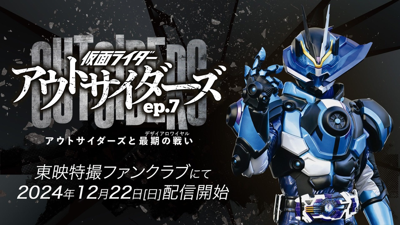 #TTFCオリジナル #仮面ライダーアウトサイダーズ #仮面ライダージーンゲイザー<br>『仮面ライダーアウトサイダーズep.7 アウトサイダーズと最期の戦い(デザイアロワイヤル)』 東映特撮ファンクラブで12月22日(日)配信決定! 東映特撮ファンクラブ(TTFC)で大人気配信中の #TTFCオリジナル『#仮面ライダーアウトサイダーズ』。 2022年に『ep.0』から始まった本シリーズも『ep.7 アウトサイダーズと最期の戦い(デザイアロワイヤル)』でついに完結! 【ジーン(演:鈴木 福)】が「#仮面ライダージーンゲイザー」に変身! そして、【浅倉 威(演:萩野 崇)】、【橘 朔也(演:天野浩成)】、【檀 黎斗(演:岩永徹也)】、【天津 垓(演:桜木那智/現・那智】、【滅(演:砂川脩弥)】、【ジョージ・狩崎(演:濱尾ノリタカ)】ら歴代アウトサイダーズが集結し共闘する姿も。 いかにしてアウトサイダーズは集められたのか、ジーンが開催を宣言する「ゼインゲーム」との関係は? 敵対する「仮面ライダーゼイン」と「仮面ライダーエボルX」の思惑を #アウトサイダーズ は打ち砕くことができるのか───? TTFCオリジナル 仮面ライダーアウトサイダーズep.7 アウトサイダーズと最期の戦い(デザイアロワイヤル) 12月22日(日)TTFCにて配信開始! 【出演】 鈴木 福(ジーン 役) 萩野 崇(橘 朔也 役) 天野浩成(浅倉 威 役) 松島庄汰(ブレン 役) 岩永徹也(檀 黎斗役) 桜木那智(天津 垓 役) 砂川脩弥(滅 役) 濱尾ノリタカ(ジョージ・狩崎 役) 青島 心(ツムリ 役) 並木彩華(ベロバ 役) 鶴嶋乃愛(仮面ライダーゼロスリー 声) 速水 奨(仮面ライダーゼロスリー 声) 金尾哲夫(仮面ライダーエボルX 声) 古谷大和(エコル 役) 高橋ヒロム(ジョゼフ・乱堂 役) 中村優一(桜井侑斗 役) 【スタッフ】 原作:石ノ森章太郎 監督:柴﨑貴行 脚本:高橋悠也 プロデュース:大森敬仁、谷中 寿成(東映) 主題歌『What’s the Outsiders?』 歌:m.c.A・T 作詞・作曲・編曲:m.c.A・T