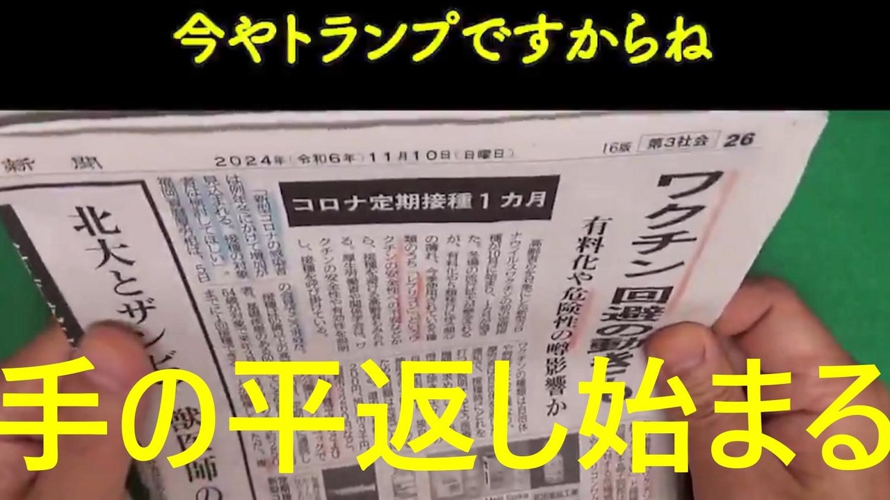 2024.11.10鹿先生 <br><br>トランプがワクチンを徹底的に見直すと言ってるから 北海道新聞が見出しを変えたな