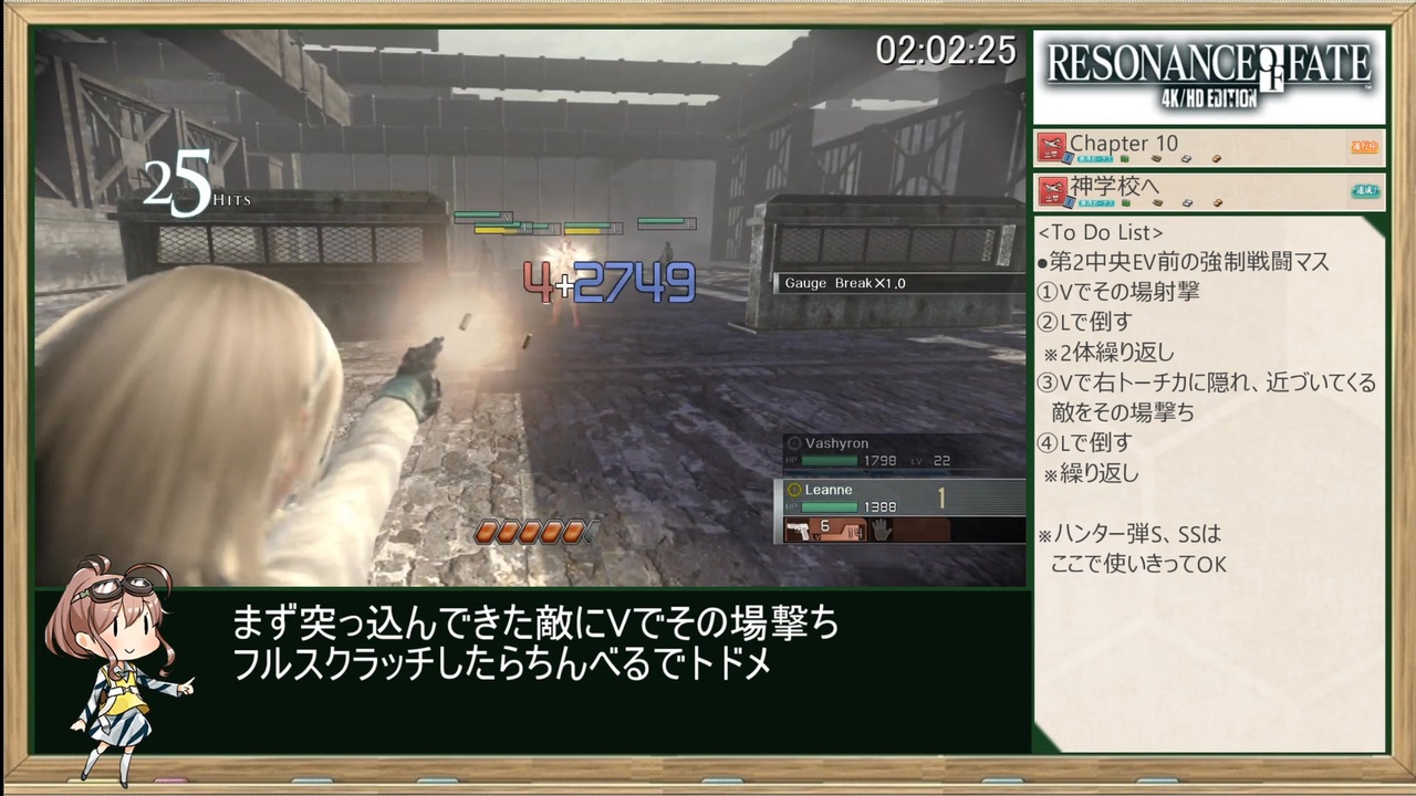 ねぇヴァシュロン<br>「確実に殺すなら脳幹に2発だ」<br>って英語でなんて言うの?<br><br>【GAME】 <br>Resonance of fate(レゾナンスオブフェイト)<br>Steam版(エンドオブエタニティの海外版)<br><br>【レギュレーション】<br>・計測区間:START GAME~クリアデータセーブ説明文表示<br>・難易度:NORMAL<br><br>【<a href="https://www.nicovideo.jp/mylist/76936875" target="_blank" rel="noopener">mylist/76936875</a>】 <br>PREV≫<a href="https://www.nicovideo.jp/watch/sm44284347" class="watch">sm44284347</a><br>NEXT≫愛宕改二実装後<br><br>≪前作RTA≫<br>【VALKYRIE PROFILE】プラチナトロフィー取得RTA_4:26:47_Part.1<br>≫<a href="https://www.nicovideo.jp/watch/sm42393086" class="watch">sm42393086</a><br><br>≪前走≫<br>END OF ETERNITY 4K/HD EDITION RTA_3:36:50_Part.1<br>≫<a href="https://www.nicovideo.jp/watch/sm37506037" class="watch">sm37506037</a><br><br>Other Cielo’s Title <br>【<a href="https://www.nicovideo.jp/mylist/50418741" target="_blank" rel="noopener">mylist/50418741</a> 】<br><br>twitter <a href="https://twitter.com/Cielo_Polo" target="_blank" rel="noopener nofollow">https://twitter.com/Cielo_Polo</a><br>