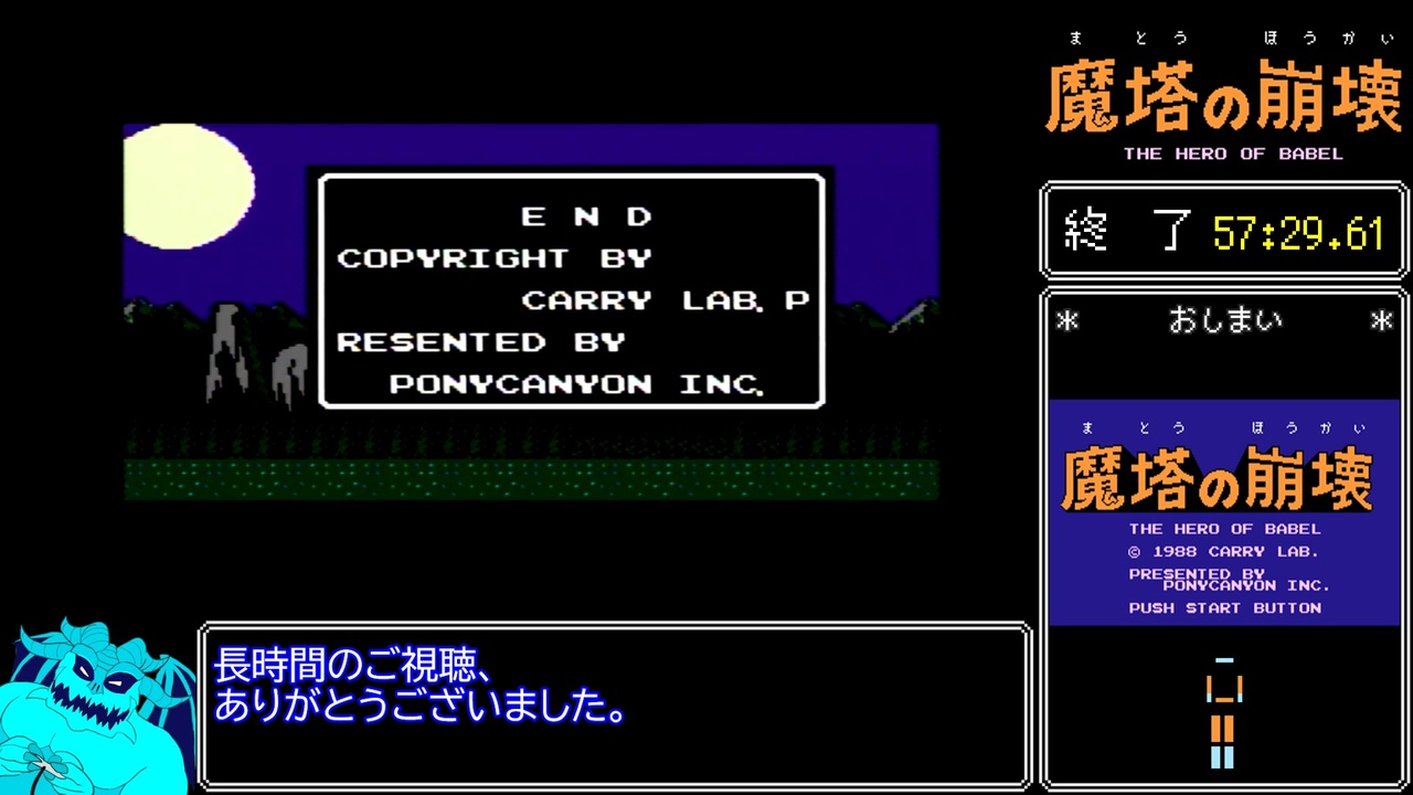 とんがりコーンに水を入れて一緒に食べるのが好きでした(推定少数派)<br><br>Part1→<a href="https://www.nicovideo.jp/watch/sm44273266" class="watch">sm44273266</a><br>Part2→<a href="https://www.nicovideo.jp/watch/sm44312348" class="watch">sm44312348</a><br><br>他のRTA動画:<a href="https://www.nicovideo.jp/mylist/72204350" target="_blank" rel="noopener">mylist/72204350</a><br><br /><br><u>****宣伝領域****</u><br><span style="color: #9900ff;">◯Twitch:たまにゆっくり音声で配信してます。見てネ!</span><br>→ <a href="https://www.twitch.tv/chari_demon" target="_blank" rel="noopener nofollow">https://www.twitch.tv/chari_demon</a><br><span style="color: #0000ff;">◯Twitter:たまに役に立たないことをつぶやく場所。見なくてイイです!</span><br>→ <a href="https://twitter.com/MatChariot" target="_blank" rel="noopener nofollow">https://twitter.com/MatChariot</a><br><br><a target="_blank" href="https://qa.nicovideo.jp/faq/show/19424?site_domain=default" style="font-size: 13px;color: #657586; text-decoration: underline; line-height: 1.4">この動画は投稿者によって修正されました</a>