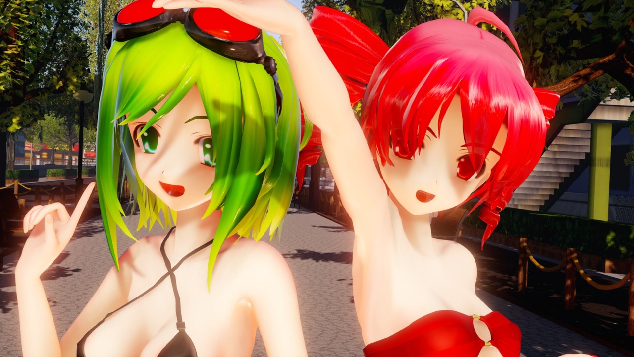 昨日今日と夏日ということで水着なのです(^^)<br><br>そしてテトとGUMIに一緒に歌ってもらいましたが、GUMIの方が大きいのですw<br><br><br>お借りしたもの<br>ツール:MikuMikuDanceVer9.32x64 つんでれんこVer2.98 Ray-MMD1.5.2<br>楽曲本家様:八王子P様(<a href="https://www.nicovideo.jp/watch/sm15479882" class="watch">sm15479882</a>)<br>踊り:馬琴様&ミンカ・リー様(<a href="https://www.nicovideo.jp/watch/sm15605558" class="watch">sm15605558</a>)<br>ステージ:秋の公園(<a href="https://www.nicovideo.jp/watch/sm21665254" class="watch">sm21665254</a>) 空色町(<a href="https://www.nicovideo.jp/watch/sm19376319" class="watch">sm19376319</a>)<br>カメラワーク:yukariko様(<a href="https://www.nicovideo.jp/watch/sm44008048" class="watch">sm44008048</a>)<br>モデル:らぶ式GUMI らぶ式テト<br><br>モーション配布はこちら→<a href="https://www.nicovideo.jp/watch/sm21281969" target="_blank" rel="noopener nofollow">https://www.nicovideo.jp/watch/sm21281969</a><br><br><a target="_blank" href="https://qa.nicovideo.jp/faq/show/19424?site_domain=default" style="font-size: 13px;color: #657586; text-decoration: underline; line-height: 1.4">この動画は投稿者によって修正されました</a>