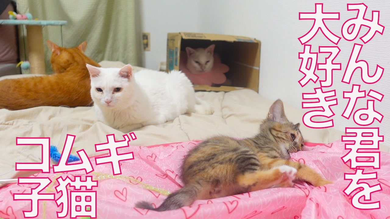コムギ子猫、珍妙猫たちの中心になる 6:17
