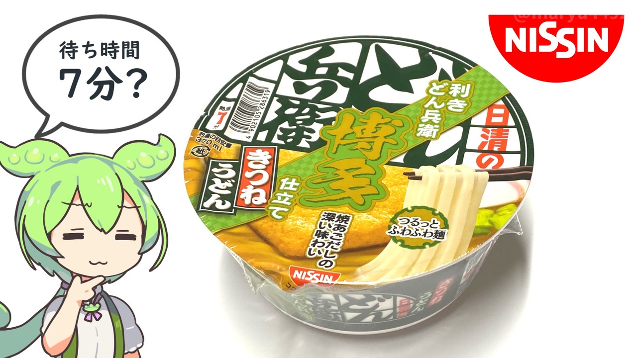 以前紹介した日清食品が発売している利きどん兵衛の博多仕立てです。 <br>待ち時間は7分と長めです。<br><br><br><br>【関連動画】 <br>日清食品「利きどん兵衛 天ぷらそば 信州」2024.11.01<br><a href="https://www.nicovideo.jp/watch/sm44268968" target="_blank" rel="noopener nofollow">https://www.nicovideo.jp/watch/sm44268968</a><br><br>【参考】 <br>「日清の利きどん兵衛」シリーズ6品 (10月14日発売)2024.09.30(日清食品) <br><a href="https://www.nissin.com/jp/news/12919" target="_blank" rel="noopener nofollow">https://www.nissin.com/jp/news/12919</a> <br>生産工場・製造所(日清食品) <br><a href="https://www.nissin.com/jp/about/nissinfoods/factory/" target="_blank" rel="noopener nofollow">https://www.nissin.com/jp/about/nissinfoods/factory/</a> <br>日清食品(株)下関工場※PDFファイル(山口県ホームページ) <br><a href="https://www.pref.yamaguchi.lg.jp/uploaded/attachment/54356.pdf" target="_blank" rel="noopener nofollow">https://www.pref.yamaguchi.lg.jp/uploaded/attachment/54356.pdf</a> <br>福岡のソウルフード ふくおか3大うどん店のこだわり2022.3(福岡県観光WEB クロスロード福岡) <br><a href="https://www.crossroadfukuoka.jp/feature/udon-story" target="_blank" rel="noopener nofollow">https://www.crossroadfukuoka.jp/feature/udon-story</a> <br>現地編集部が実食した博多うどん10選 2016.8(たびらい) <a href="https://www.tabirai.net/sightseeing/fukuoka/tatsujin/0000554.aspx" target="_blank" rel="noopener nofollow">https://www.tabirai.net/sightseeing/fukuoka/tatsujin/0000554.aspx</a> <br> (株)資さん(マイナビ2025) <br><a href="https://job.mynavi.jp/25/pc/search/corp203760/outline.html" target="_blank" rel="noopener nofollow">https://job.mynavi.jp/25/pc/search/corp203760/outline.html</a> <br>店舗住所(釜揚げの牧うどん) <br><a href="https://www.makinoudon.jp/cont6/main.html" target="_blank" rel="noopener nofollow">https://www.makinoudon.jp/cont6/main.html</a><br>株式会社ウエスト 様(マルチブック)<br> <a href="https://www.multibook.jp/case/west/" target="_blank" rel="noopener nofollow">https://www.multibook.jp/case/west/</a> <br><br>【使用した素材】(※敬称略) <br>(合成音声)VOICEVOX/ずんだもん/四国めたん <br><a href="https://voicevox.hiroshiba.jp/" target="_blank" rel="noopener nofollow">https://voicevox.hiroshiba.jp/</a> <br>(立ち絵)坂本アヒル<br> <a href="https://seiga.nicovideo.jp/seiga/im10788496?track" target="_blank" rel="noopener nofollow">https://seiga.nicovideo.jp/seiga/im10788496?track</a> <br>(楽曲)甘茶の音楽工房/「楽しい麦畑」「フルーツパフェ」<br> <a href="https://amachamusic.chagasi.co" target="_blank" rel="noopener nofollow">https://amachamusic.chagasi.co</a>