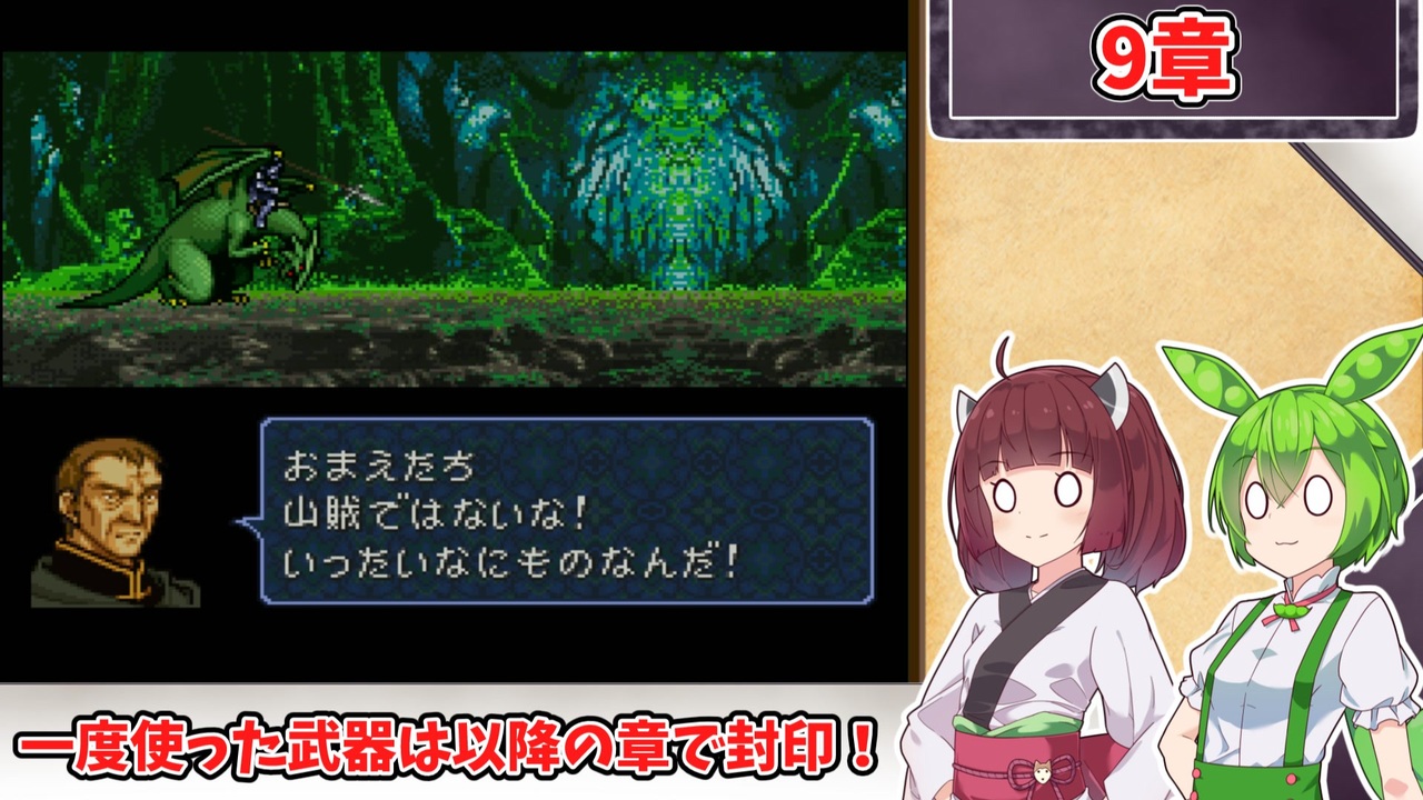 <span style="color: #85200c; font-size: 24px;"><strong><i>ピロンッ♪</i></strong></span><br><br><br><span style="font-size: 16px;"><strong>1:一度使用した武器種は、以降の章で使用する事を禁止する。<br>2:武器の使用の定義は『その武器を装備した状態で敵との戦闘が発生したタイミング』<br>または『その武器を使って敵に「捕える」コマンドを実行したタイミング』<br>杖の場合は『対象に対して使用した時点(命中の可否は問わない)』とする。 </strong></span><br><span style="color: #ff0000; font-size: 16px;"><strong>※同盟軍、演出による戦闘イベントでは使用した判定にはならないこととする。</strong></span><span style="font-size: 16px;"><strong> <br>3:仲間を47人生存させ、【外伝】を含む全ての章を攻略し、総合評価でB以上の状態でゲームをクリアする。</strong></span><br><br><br>本動画のシリーズリスト【<a href="https://www.nicovideo.jp/series/482976" target="_blank" rel="noopener">series/482976</a>】<br>『烈火』の同縛りプレイ【<a href="https://www.nicovideo.jp/series/406473" target="_blank" rel="noopener">series/406473</a>】<br>『封印』の同縛りプレイ【<a href="https://www.nicovideo.jp/series/316824" target="_blank" rel="noopener">series/316824</a>】<br>前:【<a href="https://www.nicovideo.jp/watch/sm44307663" class="watch">sm44307663</a>】次:【<a href="https://www.nicovideo.jp/watch/sm44354083" class="watch">sm44354083</a>】<br><br><strong>使用したソフト</strong><br>VOICEROID+東北きりたんEX<br>VOICEVOX:ずんだもん<br>VOICEPEAK ずんだもん<br><strong>お借りした素材</strong><br>ニコニコモンズの皆様(コンテンツツリー参照)