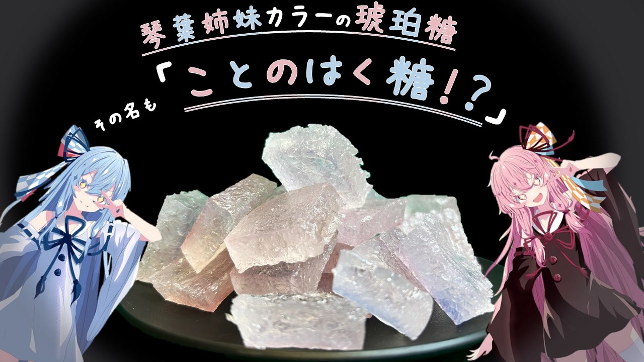 琴葉姉妹カラーの琥珀糖を作りました!<br>レンズを通してみるとあおいちゃんカラーが少し弱くなったんですが…これはどういう原理…<br><br />↓いつもお世話になっている作品の作成者様↓<br>立ち絵:六炉ロロ様<br>あおいちゃん <a href="https://seiga.nicovideo.jp/seiga/im11433247" target="_blank" rel="noopener nofollow">https://seiga.nicovideo.jp/seiga/im11433247</a><br>あかねちゃん <a href="https://seiga.nicovideo.jp/seiga/im11449045" target="_blank" rel="noopener nofollow">https://seiga.nicovideo.jp/seiga/im11449045</a><br><br>BGM:こんとどぅふぇ様<br> :魔王魂様<br>背景:AIPICT(<a href="https://aipict.com/)" target="_blank" rel="noopener nofollow">https://aipict.com/)</a><br>効果音:効果音ラボ様<br>voice:琴葉姉妹 (A.I.VOICE様)<br>歌 :SynthesizerV琴葉姉妹(HVS様)<br><br>~~~~~~~~~~~~~~~~~~~~~~~~~~~~~~~~~~~~~~~~~~~~~~~~<br><br>YouTubeで琴葉姉妹がXで気になったお料理するshort動画を月から金投稿してます。<br>→<a href="https://www.youtube.com/channel/UC-wmVbGWg6xzFpQklD8iUcA" target="_blank" rel="noopener nofollow">https://www.youtube.com/channel/UC-wmVbGWg6xzFpQklD8iUcA</a><br><br>Xもアカウントあります。いまだに何をつぶやけばいいのかわかりませんが…<br>→<a href="https://x.com/X_hagyo_" target="_blank" rel="noopener nofollow">https://x.com/X_hagyo_</a><br><br>ニコニコ動画がほぼ触れたことないので至らぬ点ございますが<br>琴葉姉妹にとりあえず喋ってもらいたい その一心でここまでやってきたんです~<br><br>