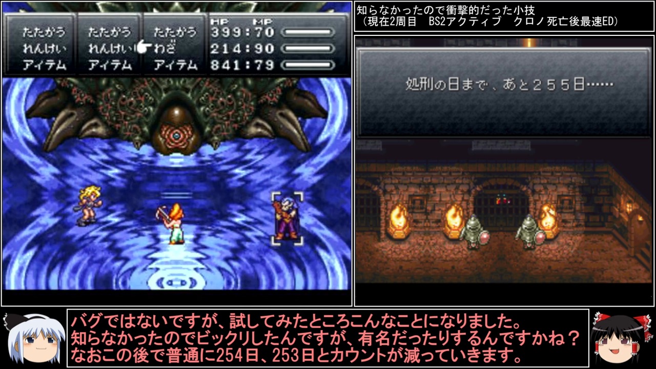 2周目のpart3です。<br>ようやく経験値分配が終了。長く苦しい分配でした。<br><br>前→<a href="https://www.nicovideo.jp/watch/sm44311875" class="watch">sm44311875</a><br>次→<a href="https://www.nicovideo.jp/watch/sm44342920" class="watch">sm44342920</a><br><br>YouTube版→<a href="https://youtu.be/-B6nZyl3ILw" target="_blank" rel="noopener nofollow">https://youtu.be/-B6nZyl3ILw</a><br><br>縛りルール<br>①一度使った武器・防具・アクセサリー・道具・技・連携は<br> 次周回以降使用禁止(売却も解禁扱い)<br><br>②一度戦った敵シンボルとの再戦禁止。<br><br>③初戦闘の敵からの逃走禁止。<br><br>④裏技、バグ技、状況再現禁止。<br><br>⑤BS1アクティブからBS8ウェイトまで<br> 全てのバトルスピードとバトルモードで攻略する。<br><br>⑥各周回において見る予定のED条件を<br> 満たした段階で即ラヴォスと戦いに行く。<br><br>※ネタバレ注意です<br><br>このページ、動画で利用している弊社または弊社のライセンサーが権利を有する著作物の転載・配布は禁止いたします。<br>© 1995, 2018 SQUARE ENIX<br>Illustration: © 1995 BIRD STUDIO / SHUEISHA<br>Story and Screenplay: © 1995, 2008 ARMOR PROJECT / SQUARE ENIX<br><br>AquesTalk2ライセンスID:AQTK2WINUSR23122185<br /><br><br>❤いいねを押していただけるとモチベーションと投稿速度が上がるので宜しくお願い致します!<br><br>作者ツイッター→ <a href="https://twitter.com/nig0117" target="_blank" rel="noopener nofollow">https://twitter.com/nig0117</a><br>PIXIV FANBOX→ <a href="https://sutanokeiji.fanbox.cc/" target="_blank" rel="noopener nofollow">https://sutanokeiji.fanbox.cc/</a><br><br>( 以前はWEB小説書いてました→ <a href="https://kakuyomu.jp/works/1177354054884910267" target="_blank" rel="noopener nofollow">https://kakuyomu.jp/works/1177354054884910267</a> )