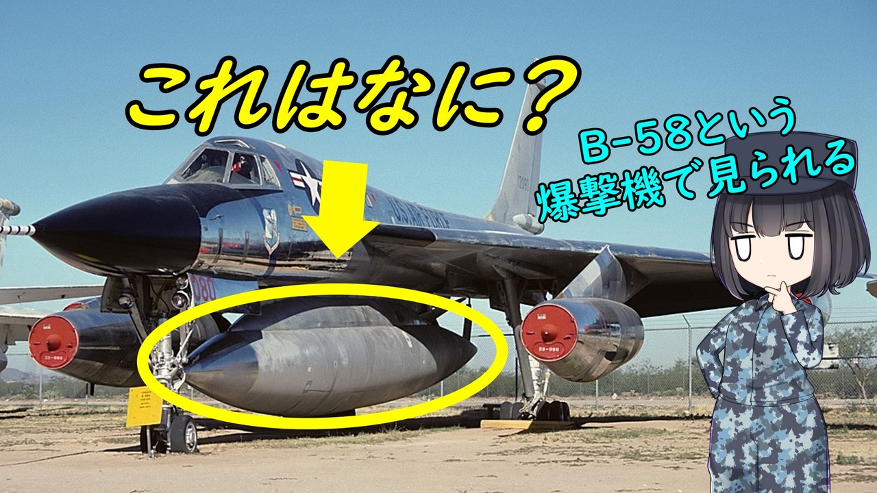 引用・参考資料等<br><a href="https://www.nationalmuseum.af.mil/Visit/Museum-Exhibits/Fact-Sheets/Display/Article/196439/convair-b-58a-hustler/" target="_blank" rel="noopener nofollow">https://www.nationalmuseum.af.mil/Visit/Museum-Exhibits/Fact-Sheets/Display/Article/196439/convair-b-58a-hustler/</a><br><a href="https://b-58.com/history_offensive.php" target="_blank" rel="noopener nofollow">https://b-58.com/history_offensive.php</a><br><a href="https://www.quora.com/Why-did-the-B-58-Hustler-need-that-bomb-pod-underneath" target="_blank" rel="noopener nofollow">https://www.quora.com/Why-did-the-B-58-Hustler-need-that-bomb-pod-underneath</a><br />youtubeの方<br><a href="https://www.youtube.com/c/AdmiralyukkurimilitarybyRetoRooRaa/videos" target="_blank" rel="noopener nofollow">https://www.youtube.com/c/AdmiralyukkurimilitarybyRetoRooRaa/videos</a><br>ボクのツイッター<br><a href="https://twitter.com/retoro_V" target="_blank" rel="noopener nofollow">https://twitter.com/retoro_V</a><br>キャラデザイン<br>CaraCorn様