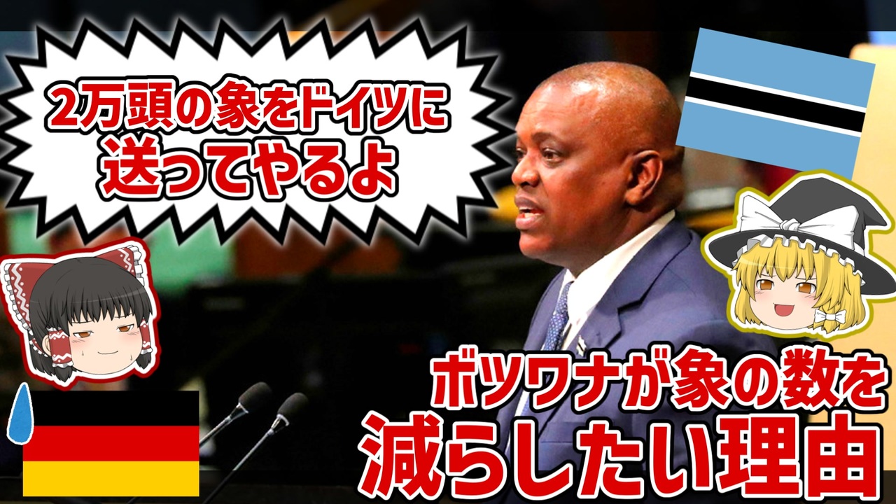 <span style="font-size: 16px;"><strong>今回はボツワナが抱える『ゾウ問題』について解説してみました!</strong></span><br><br> 自然が豊かで多くの野生動物が住むアフリカ。<br> そんなきれいなままでいてほしいと思うのは、<br>先進国の住民のエゴなのかもしれない。 <br><br>汚くて凶暴な野生動物という部分にはふたをして、<br> アフリカに押し付けてしまっているのかもしれない。 <br><br>そんなお話 <br><br>追記:ボツワナの政権交代によって、新大統領となったドゥマ・ボコ氏は<br> トロフィーハンティングを辞める的なことも言っていましたのでまた状況が変わるかもです<br><br>◆Twitter <a href="https://twitter.com/AfrikaanerMaris" target="_blank" rel="noopener nofollow">https://twitter.com/AfrikaanerMaris</a> <br>◆マイリスト <a href="https://www.nicovideo.jp/mylist/73354161" target="_blank" rel="noopener nofollow">https://www.nicovideo.jp/mylist/73354161</a><br>◆参考文献 <a href="https://note.com/africarner1960/n/n71..." target="_blank" rel="noopener nofollow">https://note.com/africarner1960/n/n71...</a>