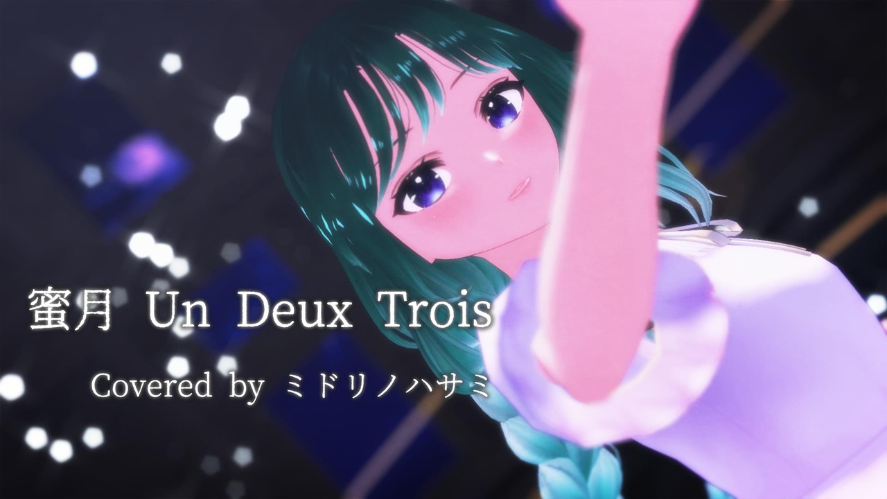 ずっと歌ってみたいと思っていた歌を、大切な友人がリクエストしてくれました。運命!<br>そしてMMD関連の素材を配布してくださる方々にはいつも感謝です。<br>よかったらコメントで夜空をつくってくれたらうれしいです~!<br>*・.。**・.。☽*・.。**・.。✂*・.。**・.。☽*・.。**・.。✂*・.。**・.。<br><br>■Cover Credit<br><br>原曲:蜜月アン・ドゥ・トロワ DATEKEN様 <a href="https://www.nicovideo.jp/watch/sm20096569" class="watch">sm20096569</a><br><br>歌・モデリング・動画:ミドリノハサミ <a href="https://www.nicovideo.jp/mylist/30288886" target="_blank" rel="noopener">mylist/30288886</a><br><a href="https://x.com/midorihasami" target="_blank" rel="noopener nofollow">https://x.com/midorihasami</a><br><br>ボーカルミックス:フジ・ヌバル=ニキ様<br><a href="https://x.com/NubaruMixing" target="_blank" rel="noopener nofollow">https://x.com/NubaruMixing</a><br><br>■MMD Credit<br><br>モーション<br> 振付 :まーや様 <a href="https://www.nicovideo.jp/watch/sm28677913" class="watch">sm28677913</a><br> モーション作成:つん様 <a href="https://www.nicovideo.jp/watch/sm29860241" class="watch">sm29860241</a><br><br>リップモーション:仁和様 <a href="https://www.nicovideo.jp/watch/sm29917315" class="watch">sm29917315</a><br>カメラ:盗賊@つばきP様 <a href="https://www.nicovideo.jp/watch/sm40774660" class="watch">sm40774660</a><br>ステージ:yuduki様 <a href="https://seiga.nicovideo.jp/seiga/im4184157" target="_blank" rel="noopener">im4184157</a><br>スカイドーム:怪獣対若大将P様 <a href="https://seiga.nicovideo.jp/seiga/im5798361" target="_blank" rel="noopener">im5798361</a><br><br>エフェクト<br> そぼろ様<br> ましまし様<br> 針金P様<br> 1948MMD様<br> ikeno様<br> 化身バレッタ様<br> 山田淀子様<br><br>衣装:Sugar*Fleur様<br>変換:miu様 とある工房様<br />୨୧-----------------------------------------------------୨୧<br>幅広く表現をしたくて色々な方と活動中。<br>良いなと思ったらコメント・いいね・フォローをしていただけると嬉しいです♪<br>୨୧-----------------------------------------------------୨୧<br><span style="color: #45818e;"><strong>オリジナル楽曲 Single,1st/2nd/3rd/4th/5th ALBUM発売中!</strong></span><br>5thボーカルアルバム「想定線」試聴 <a href="https://www.nicovideo.jp/watch/sm45505219" class="watch">sm45505219</a><br>4thボーカルアルバム「サザンクロス」試聴 <a href="https://www.nicovideo.jp/watch/sm43653951" class="watch">sm43653951</a><br>3rdボーカルアルバム「フシギナイト」試聴 <a href="https://www.nicovideo.jp/watch/sm42863148" class="watch">sm42863148</a><br>2ndボーカルアルバム「breath」試聴 <a href="https://www.nicovideo.jp/watch/sm41235245" class="watch">sm41235245</a><br>1stボーカルアルバム「本日、雨びより。」試聴 <a href="https://www.nicovideo.jp/watch/sm40329824" class="watch">sm40329824</a><br>◎<strong>ミドリノハサミBOOTH</strong>:<a href="https://scissors-box.booth.pm/" target="_blank" rel="noopener nofollow">https://scissors-box.booth.pm/</a><br>◎<strong>サークル「scissors box」</strong>:<a href="https://www.scissors-box.com/" target="_blank" rel="noopener nofollow">https://www.scissors-box.com/</a><br>◎<strong>YouTube</strong>:<a href="https://www.youtube.com/@MidoriNoHasami/" target="_blank" rel="noopener nofollow">https://www.youtube.com/@MidoriNoHasami/</a><br>◎<strong>Amazon</strong>(1stCD):<a href="https://www.amazon.co.jp/dp/B09RKBQDK2" target="_blank" rel="noopener nofollow">https://www.amazon.co.jp/dp/B09RKBQDK2</a><br>◎<strong>メロンブックス</strong>:<a href="https://www.melonbooks.co.jp/detail/detail.php?product_id=1436403" target="_blank" rel="noopener nofollow">https://www.melonbooks.co.jp/detail/detail.php?product_id=1436403</a><br>◎オリジナル楽曲 各種サブスク配信中!<br><a href="https://linkcloud.mu/aebf64ed" target="_blank" rel="noopener nofollow">https://linkcloud.mu/aebf64ed</a><br><a href="https://linkcloud.mu/7fada57e" target="_blank" rel="noopener nofollow">https://linkcloud.mu/7fada57e</a>