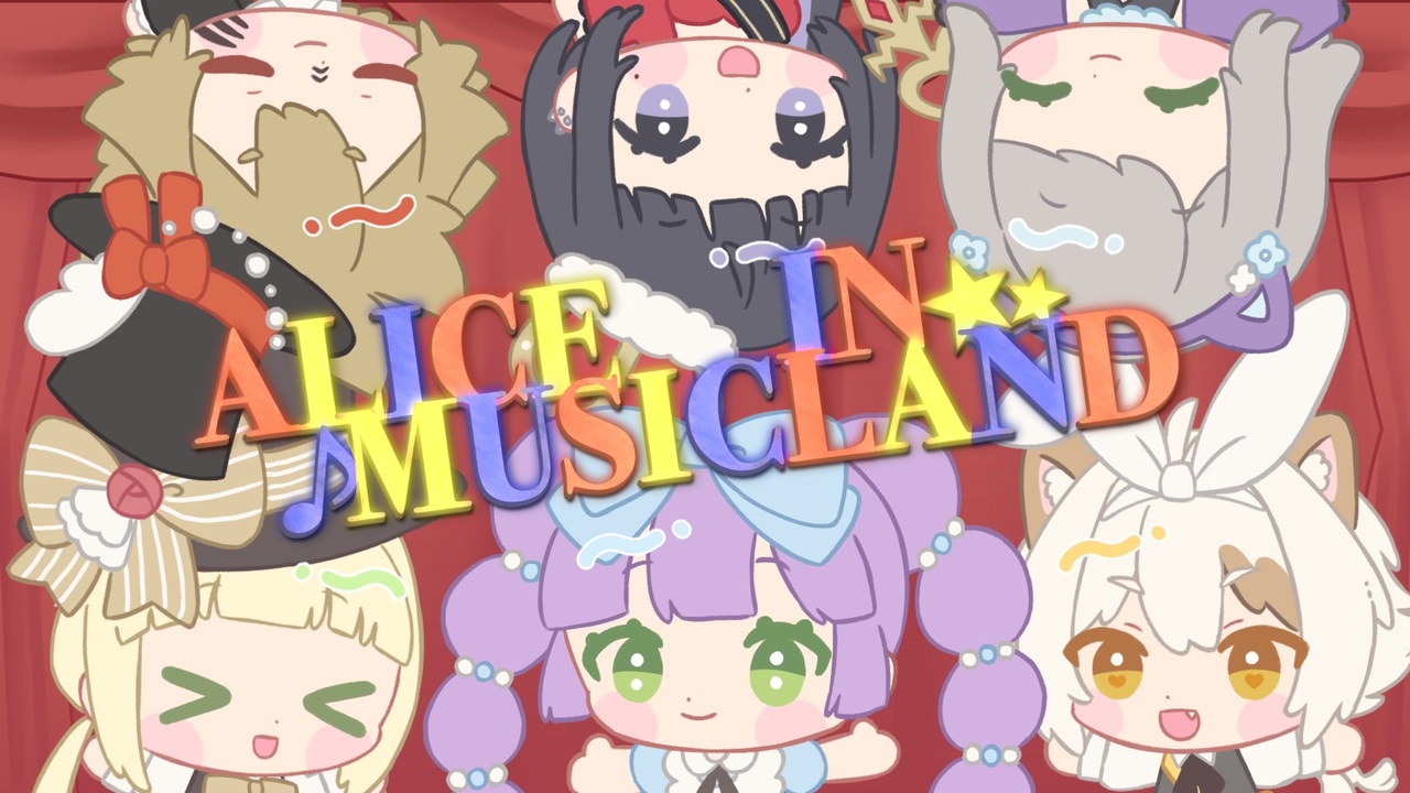 <span style="color: #e06666; font-size: 16px;"><strong>「お話をしよう <br> <br> 昔話より もっともっと素敵な おとぎ話」</strong></span><br><br>□ご来場 誠にありがとうございます<br> <br>開演に先立ちまして<br> 皆様にご案内申し上げます<br><br>もっともっとすてきな舞台にするために<br> 弾幕をご用意しました<br><br> * ⋱♥️⋰ * ⋱ ♠️⋰ * ⋱♦️⋰ * ⋱♣️⋰ * ⋱♥️⋰ * ⋱ ♠️⋰ * ⋱♦️⋰ * ⋱♣️⋰ <br><br>ぜひ皆様のお力で<br>もっともっと舞台を盛り上げてくださいませ ⸜(ˊᵕˋ)⸝<br><br>それでは まもなく開演です<br><br>心ゆくまでお楽しみくださいませ<br><br><br>== CREDIT ==<br><br>- Original -<br><br> 「Alice in Musicland」<br> <br> - OSTER project 様<br><br><br> ▷ <a href="https://www.nicovideo.jp/watch/sm15108950" class="watch">sm15108950</a><br><br>✼••┈┈┈┈•• ♡ ••┈┈┈┈┈••✼<br><br>- CAST -<br><br> Alice : Rezn ( <a href="https://x.com/Rezn_raisin" target="_blank" rel="noopener nofollow">https://x.com/Rezn_raisin</a> )<br> White Rabbit : ラブ ( <a href="https://x.com/_Luvdog" target="_blank" rel="noopener nofollow">https://x.com/_Luvdog</a> )<br> Strange Singer : 犬 ( <a href="https://x.com/utauINUINU" target="_blank" rel="noopener nofollow">https://x.com/utauINUINU</a> )<br> Mad Hatter : すあ ( <a href="https://x.com/sua_utaite" target="_blank" rel="noopener nofollow">https://x.com/sua_utaite</a> )<br> Cheshire Cat : *gura* ( <a href="https://x.com/guratan_mogmog" target="_blank" rel="noopener nofollow">https://x.com/guratan_mogmog</a> )<br> Empress : 加湿器<br><br>✼••┈┈┈┈•• ♡ ••┈┈┈┈┈••✼<br><br><br>- ILLUSTRATION <br> & MOVIE PROGRAMING -<br><br>ぽちぇ様<br><br><a href="https://x.com/opochepoche" target="_blank" rel="noopener nofollow">https://x.com/opochepoche</a><br><br><br>✼••┈┈┈┈•• ♡ ••┈┈┈┈┈••✼<br><br><br>- MIX MASTRING <br> & CHORUS GUIDE -<br><br>えんどる様<br><br><a href="https://x.com/MixDolphin" target="_blank" rel="noopener nofollow">https://x.com/MixDolphin</a><br><br><br>