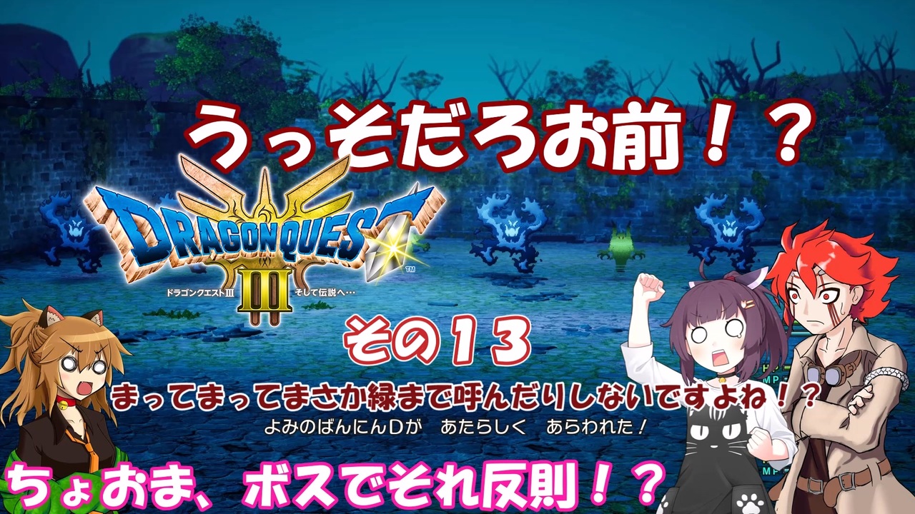 この動画はドラゴンクエスト3 HD-2D REMAKE そして伝説へ・・・<br>の実況プレイ動画となります。<br><br><span style="font-size: 18px;"><strong>※シナリオに関わるネタバレあり。ご注意ください。</strong></span><br>(動画投稿ガイドラインより)<br><br>この動画で利用している株式会社スクウェア・エニックスを代表とする共同著作者が権利を所有する著作物及びスギヤマ工房有限会社が権利を所有する楽曲の転載・配布は禁止いたします。<br>© ARMOR PROJECT/BIRD STUDIO/SPIKE CHUNSOFT/SQUARE ENIX<br>© SUGIYAMA KOBO<br>℗ SUGIYAMA KOBO<br><br><a href="https://www.nicovideo.jp/watch/sm44344971" class="watch">sm44344971</a> ←前 次→ <a href="https://www.nicovideo.jp/watch/sm44352502" class="watch">sm44352502</a><br>マイリスト → <a href="https://www.nicovideo.jp/mylist/77305494" target="_blank" rel="noopener">mylist/77305494</a><br>その1リスト → <a href="https://www.nicovideo.jp/mylist/58364125" target="_blank" rel="noopener">mylist/58364125</a><br><br>※使用Voice(及び配役)<br>VOICEVOX:春日部つむぎ(ネコ耳) 青山龍星(ドラムカン)<br>Voiceroid:東北きりたん 紲星あかり<br>立ち絵:ネコ耳・ドラムカン(470/43様より頂きました)<br>東北きりたん(立ち絵:このりEX様作 東北きりたん立ち絵素材5 <a href="https://seiga.nicovideo.jp/seiga/im10819054" target="_blank" rel="noopener">im10819054</a>)<br>紲星あかり(立ち絵:ヤッペン様作 紲星あかり立ち絵ヤッペン)