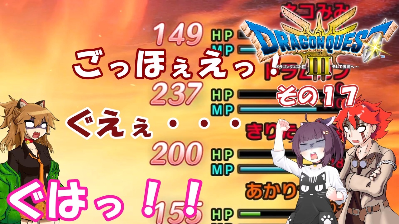 この動画はドラゴンクエスト3 HD-2D REMAKE そして伝説へ・・・<br>の実況プレイ動画となります。<br><br><span style="font-size: 18px;"><strong>※シナリオに関わるネタバレあり。ご注意ください。</strong></span><br>(動画投稿ガイドラインより)<br><br>この動画で利用している株式会社スクウェア・エニックスを代表とする共同著作者が権利を所有する著作物及びスギヤマ工房有限会社が権利を所有する楽曲の転載・配布は禁止いたします。<br>© ARMOR PROJECT/BIRD STUDIO/SPIKE CHUNSOFT/SQUARE ENIX<br>© SUGIYAMA KOBO<br>℗ SUGIYAMA KOBO<br><br><a href="https://www.nicovideo.jp/watch/sm44357714" class="watch">sm44357714</a> ←前 次→ <a href="https://www.nicovideo.jp/watch/sm44363404" class="watch">sm44363404</a><br>マイリスト → <a href="https://www.nicovideo.jp/mylist/77305494" target="_blank" rel="noopener">mylist/77305494</a><br>その1リスト → <a href="https://www.nicovideo.jp/mylist/58364125" target="_blank" rel="noopener">mylist/58364125</a><br><br>※使用Voice(及び配役)<br>VOICEVOX:春日部つむぎ(ネコ耳) 青山龍星(ドラムカン)<br>Voiceroid:東北きりたん 紲星あかり<br>立ち絵:ネコ耳・ドラムカン(470/43様より頂きました)<br>東北きりたん(立ち絵:このりEX様作 東北きりたん立ち絵素材5 <a href="https://seiga.nicovideo.jp/seiga/im10819054" target="_blank" rel="noopener">im10819054</a>)<br>紲星あかり(立ち絵:ヤッペン様作 紲星あかり立ち絵ヤッペン)