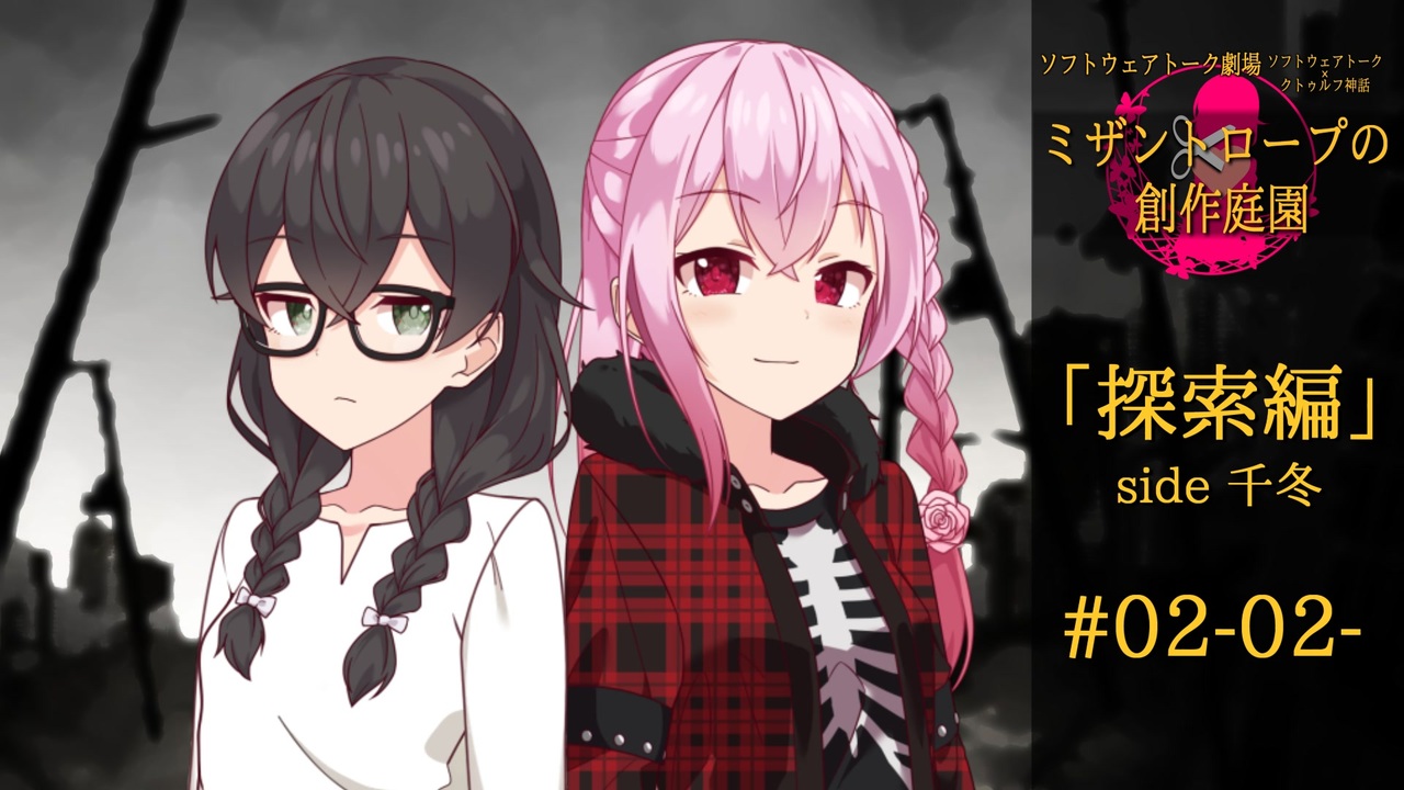 <strong>「それは白い棒状のなにかだった。<br>表面にはぬらぬらとピンク色のコーティングがまばらに施され、<br>さらに所々にはそれよりも色味の強い赤の突起がこびりついている。<br>最初、それを目撃した彼女はそれがなんなのか理解できなかった。<br>しかし数秒の凝視の後、気が付いた。<br>――骨だ。<br>それも血に塗れ、肉のこびり付いた生き物の骨。<br>さすがの千冬もこれには平常心をかき乱された」<br><br> ―――黒山羊『残虐なる者』より</strong><br><br><br>◆注意事項<br>・クトゥルフ神話(TRPGではないです)<br>・ソフトウェアトーク劇場<br>・グロテスク、残酷、猟奇的、暴力的な描写を含みます<br>・クトゥルフ神話、幽霊、妖怪などに対する独自解釈<br>・登場するソフトウェアトークのキャラクターの二次設定<br>・一部立ち絵素材の加工/衣装追加などを行っております<br>その為、DL元の内容と相違があることを予めご了承ください<br><br>上記内容を留意した上で、<br>ご視聴していただくようお願いします。<br><br>◆使用合成音声ソフト<br>A.I.VOICE 結月ゆかり<br>CeVIO AI 花隈千冬 トークボイス<br>CeVIO AI ロサ(ROSA)<br><br>◆使用BGM<br>フリーブルー/MAKOOTO様:<a href="https://commons.nicovideo.jp/works/nc221284" target="_blank" rel="noopener">nc221284</a><br>隠れた悪意/田中芳典 様:DOVA-SYNDROME<br>不 / shimtone 様:DOVA-SYNDROME<br>禁止区/shimtone 様:DOVA-SYNDROME<br>怨嗟ノイズ / shimtone 様:DOVA-SYNDROME<br><br>◆その他<br>【七三ゆきのアトリエ】イラスト素材集:七三ゆき 様<br>著作権フリー背景素材集[家]:きまぐれアフター 様<br>モブNPC100種立ち絵素材集【vol.1】:桃源郷社(蘭朱日 様)