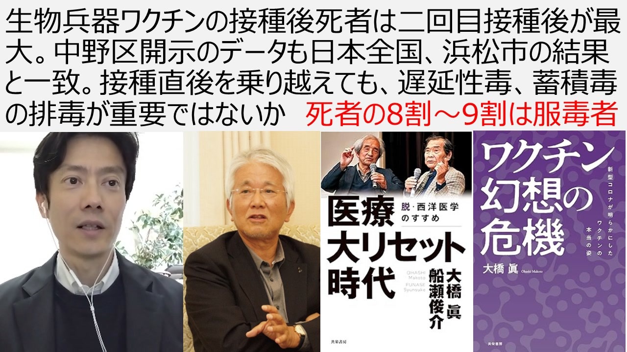 訂正)浜松町⇒浜松市<br><br>大橋眞先生 ワクチン幻想の危機<br><a href="https://www.amazon.co.jp/dp/B0C7KHFFDX/" target="_blank" rel="noopener nofollow">https://www.amazon.co.jp/dp/B0C7KHFFDX/</a><br><br>大橋眞先生 ガンの真実<br><a href="https://www.amazon.co.jp/dp/B0CXYJZZGY/" target="_blank" rel="noopener nofollow">https://www.amazon.co.jp/dp/B0CXYJZZGY/</a><br><br>池田としえチャンネル「コロナ禍の4年間を振り返って」<br><a href="https://live.nicovideo.jp/watch/lv345669122" target="_blank" rel="noopener nofollow">https://live.nicovideo.jp/watch/lv345669122</a><br><br>Dr.苫米地 ヒトに初めて実用化接種されるmRNAワクチンとは(2021年3月1日放送)<br><a href="https://www.nicovideo.jp/watch/sm39208786" target="_blank" rel="noopener nofollow">https://www.nicovideo.jp/watch/sm39208786</a><br><br>元文部省委員×元農林水産大臣が語る「ゲノム編集食品」と「RNAコロナワクチン」の危険性と危惧 (苫米地英人×山田正彦)<br><a href="https://www.youtube.com/watch?v=UmqRgt5QNOQ&t=1379s" target="_blank" rel="noopener nofollow">https://www.youtube.com/watch?v=UmqRgt5QNOQ&t=1379s</a><br><br>コミナティ2024年4月版 添付文書<br><a href="https://www.pmda.go.jp/PmdaSearch/iyakuDetail/ResultDataSetPDF/672212_631341DA5020_1_03" target="_blank" rel="noopener nofollow">https://www.pmda.go.jp/PmdaSearch/iyakuDetail/ResultDataSetPDF/672212_631341DA5020_1_03</a><br><br>スパイクバックス2024年4月改定版 1価オミクロン株XBB 添付文書<br><a href="https://www.pmda.go.jp/PmdaSearch/iyakuDetail/ResultDataSetPDF/790314_631341EA2026_1_03" target="_blank" rel="noopener nofollow">https://www.pmda.go.jp/PmdaSearch/iyakuDetail/ResultDataSetPDF/790314_631341EA2026_1_03</a><br><br>重篤副作用疾患別対応マニュアル アナフィラキシー<br><a href="https://www.info.pmda.go.jp/juutoku/file/jfm1909006.pdf" target="_blank" rel="noopener nofollow">https://www.info.pmda.go.jp/juutoku/file/jfm1909006.pdf</a><br><br>コミナティ2024年6月作成、8月改定 12歳以上JN.1系統<br><a href="https://www.pmda.go.jp/PmdaSearch/iyakuDetail/ResultDataSetPDF/672212_631341DG1028_1_02" target="_blank" rel="noopener nofollow">https://www.pmda.go.jp/PmdaSearch/iyakuDetail/ResultDataSetPDF/672212_631341DG1028_1_02</a><br><br>スパイクバックス2024年8月作成JN.1系統<br><a href="https://www.pmda.go.jp/PmdaSearch/iyakuDetail/ResultDataSetPDF/790314_631341EA3022_1_01" target="_blank" rel="noopener nofollow">https://www.pmda.go.jp/PmdaSearch/iyakuDetail/ResultDataSetPDF/790314_631341EA3022_1_01</a><br><br>日本国独立宣言論 私は独立を宣言する! 真田信秋<br><a href="https://amzn.to/3D90lwx" target="_blank" rel="noopener nofollow">https://amzn.to/3D90lwx</a><br> <br>主権者命令書 主権破壊を許すな 売国傀儡日本政府を解体せよ<br><a href="https://amzn.to/49z51b5" target="_blank" rel="noopener nofollow">https://amzn.to/49z51b5</a>
