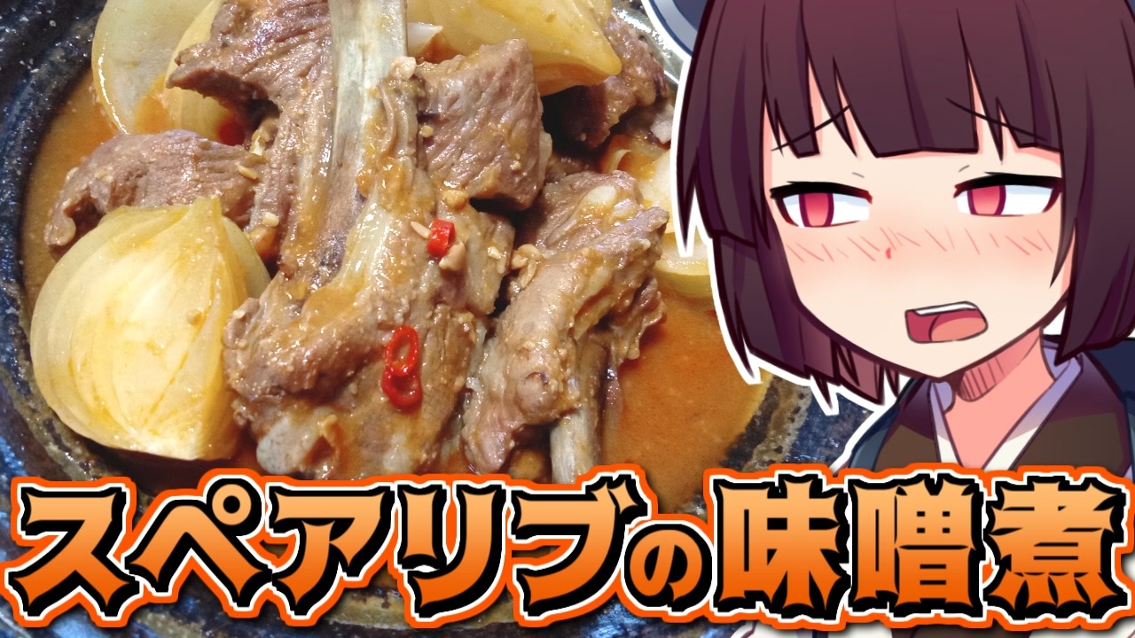 <strong><材料(1~2人分)></strong><br>豚スペアリブ:約500g<br>玉ねぎ:1個<br><br>――――以下A――――<br>砂糖:大さじ1<br>みりん:大さじ1<br>しょうゆ:大さじ1<br>ケチャップ:大さじ1<br>酒:大さじ3<br>味噌:大さじ3<br>水:450ml<br>鷹の爪:1本<br>―――――――――――<br><br><strong><作り方(簡易版)></strong><br>・豚スペアリブに切り込みを入れる(動画内参照)<br>・玉ねぎの根をギリギリで切り落とし、大き目のくし切りにする。<br>・鷹の爪の種を抜き、Aを全て合わせる。<br>・蒸し器で豚スペアリブを30分蒸す。<br>・豚スペと調味料を別の鍋に入れ、落とし蓋をして弱火で20分煮る。<br>・豚スペを裏返し、玉ねぎを間に詰めて更に10分煮る。<br>・計30分煮たら落とし蓋を外し、強火で少し煮詰める。