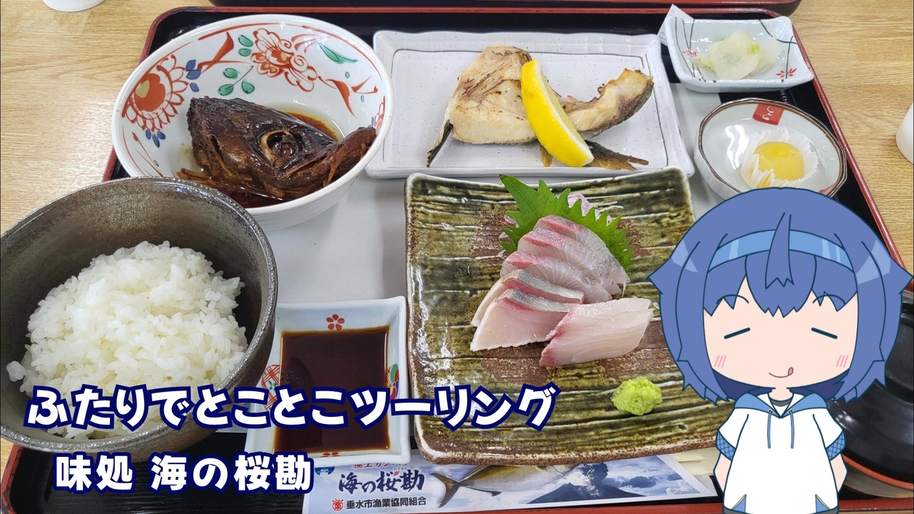 2024年12月。聖芳さんと二人でお出かけして、遅めの秋を見てこようと思います。<br> その前に、腹ごしらえです。<br><br><strong>■味処 海の桜勘</strong><br> 〒891-2101 鹿児島県垂水市海潟643−6<br> <a href="https://maps.app.goo.gl/TvNxpJgKGrEaRhix6" target="_blank" rel="noopener nofollow">https://maps.app.goo.gl/TvNxpJgKGrEaRhix6</a><br> 漁協直営のお店です。そう、直営なので安く、美味しいお魚が食べられます。<br> メニューは定食がメインで、焼いた、煮た、そのままといった様々な調理をされたカンパチなどがいただけます。<br><br><strong>■一緒に走った方</strong><br>・聖芳さん <a href="https://www.nicovideo.jp/series/38361" target="_blank" rel="noopener">series/38361</a><br><br>■BGM 森の踊り <a href="https://commons.nicovideo.jp/works/nc148115" target="_blank" rel="noopener">nc148115</a> <br>■立ち絵 すずきつづみ(自作) <a href="https://seiga.nicovideo.jp/seiga/im11033880" target="_blank" rel="noopener">im11033880</a><br>■音声 CeVIO すずきつづみ<br />■車載動画 <a href="https://www.nicovideo.jp/series/5592" target="_blank" rel="noopener">series/5592</a><br> 番外編 <a href="https://www.nicovideo.jp/series/403721" target="_blank" rel="noopener">series/403721</a><br>■ユーザページ <a href="https://www.nicovideo.jp/user/347413" target="_blank" rel="noopener">user/347413</a><br><br><a target="_blank" href="https://qa.nicovideo.jp/faq/show/19424?site_domain=default" style="font-size: 13px;color: #657586; text-decoration: underline; line-height: 1.4">この動画は投稿者によって修正されました</a>