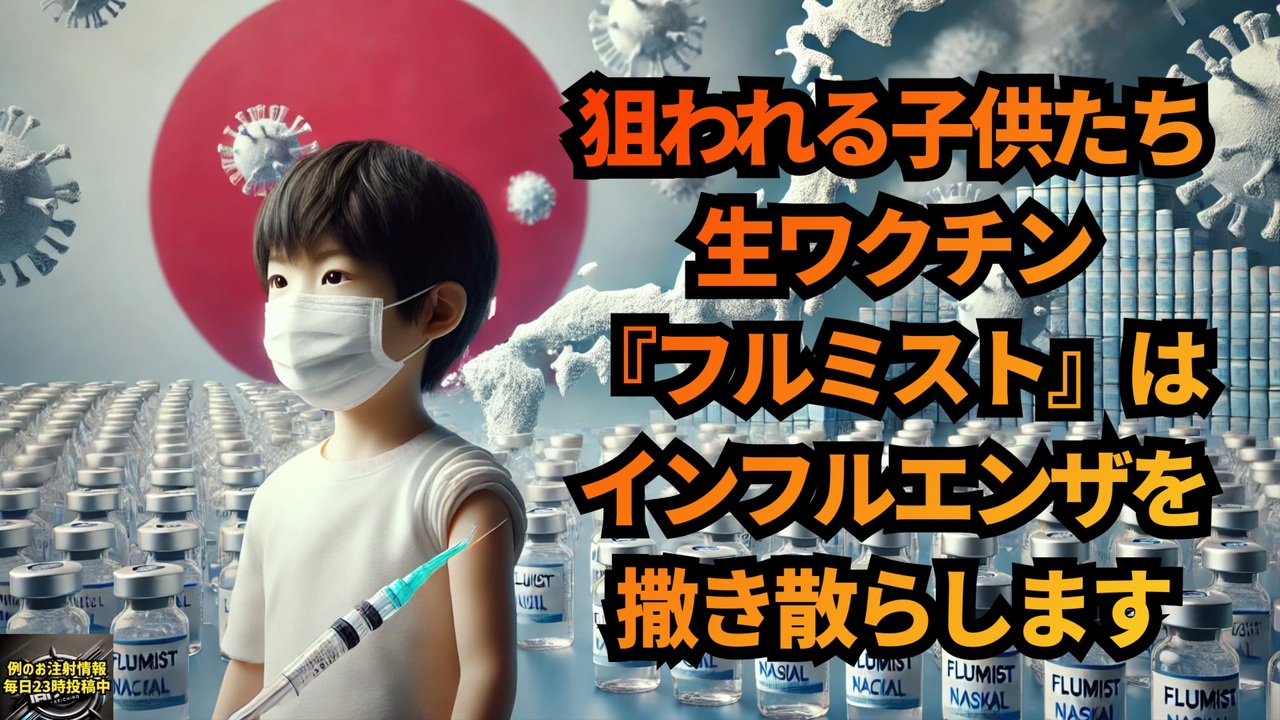 感染症に詳しい医師「生ワクチン『フルミスト』はインフルエンザをまきちらす。そのへんが難点と言えば難点」<br><br>難点過ぎませんかね <br><br><a href="https://t.co/7YdM5vdTA5" target="_blank" rel="noopener nofollow">https://t.co/7YdM5vdTA5</a><br><br><br>鼻スプレーやばすぎだろ…<br><br>フルミスト添付文書<br>↓<br>“本剤はインフルワクチンであり飛沫又は接触によりワクチンウイルスの水平伝播の可能性がある”<br><br>海外では脳炎や急性散在性脳脊髄炎(ADEM)の重篤な副作用が複数報告されているため2歳以下は使用禁止<br><br>接種開始とか狂ってるわ<br>pdf<br><a href="https://t.co/6bBhoEdzut " target="_blank" rel="noopener nofollow">https://t.co/6bBhoEdzut </a><br>X(旧Twitter)<br><a href="https://t.co/eYOBzL9YWV" target="_blank" rel="noopener nofollow">https://t.co/eYOBzL9YWV</a><br><br><br>ワクチンでも薬でもリスクはちゃんと調べておいた方がいいですよ、親が常に危機感持ってないと子供が犠牲になる。<br><br>第一三共<br>フルミスト点鼻薬(インフルエンザワクチン)<br>医薬品リスク管理計画書の概要<br><a href="https://x.com/nodaworld/status/1845801639527231931?t=dhJDu1z44i_brPYZ_VWctg&s=19" target="_blank" rel="noopener nofollow">https://x.com/nodaworld/status/1845801639527231931?t=dhJDu1z44i_brPYZ_VWctg&s=19</a><br><br><br>◆インフルエンザワクチン本当に必要? 〜知られざるリスク〜<br><a href="https://www.nicovideo.jp/watch/sm44304336" class="watch">sm44304336</a><br><br><br>インフルエンザ<br>ワクチン<br>インフルエンザワクチン<br>生ワクチン<br>フルミスト<br>予防接種<br>子供へのワクチン接種<br>点鼻タイプのワクチン<br>シェディング<br>接種後2週間は周囲に撒き散らす<br>スプレー型ワクチン<br><br>マイリンク<a href="https://lit.link/keiichiro8140" target="_blank" rel="noopener nofollow">https://lit.link/keiichiro8140</a><br><br><br />著作権、肖像権に配慮して作成しております。<br><br>◆気になったニュースの台本!?<br>メモ代わりに作った台本をそのままあげてます<br><a href="https://keiichiro8140.hatenablog.com/." target="_blank" rel="noopener nofollow">https://keiichiro8140.hatenablog.com/.</a><br><br><br>ここからはシリーズ紹介<br><br><br>◆ ワクチン解毒・デトックス<br><a href="https://x.gd/fZweg" target="_blank" rel="noopener nofollow">https://x.gd/fZweg</a><br><br>◆ウイリアム・マキス博士のがん治療(イベルメクチン・フェンベンダゾール等)<br><a href="https://x.gd/AtFYS" target="_blank" rel="noopener nofollow">https://x.gd/AtFYS</a><br><br>◆予防接種健康被害救済制度<br><a href="https://x.gd/0xK9x" target="_blank" rel="noopener nofollow">https://x.gd/0xK9x</a><br><br>◆気になったニュース #1501~<br><br>◆ 【ショートver】気になったニュース<br><a href="https://x.gd/7MxXC" target="_blank" rel="noopener nofollow">https://x.gd/7MxXC</a><br><br>◆ 気になったニュース #1001~<br><a href="https://x.gd/Lp8gv" target="_blank" rel="noopener nofollow">https://x.gd/Lp8gv</a><br><br>◆ 気になったニュース #501~<br><a href="https://x.gd/EmbS4" target="_blank" rel="noopener nofollow">https://x.gd/EmbS4</a><br><br>◆ 気になったニュース #1~#500<br><a href="https://x.gd/uPhNb" target="_blank" rel="noopener nofollow">https://x.gd/uPhNb</a><br><br>◆ X(旧Twitter)・テレグラムで気になった情報<br><a href="https://x.gd/YG6FT" target="_blank" rel="noopener nofollow">https://x.gd/YG6FT</a><br><br>◆ 日比谷5万人パレードデ⚪生放送アーカイブ動画<br><a href="https://x.gd/3CHJv" target="_blank" rel="noopener nofollow">https://x.gd/3CHJv</a><br><br>◆日比谷5万人パレード⚪モのマイリスト作ってみました<br><a href="https://nico.ms/mylist/76828848?ref=sp_other" target="_blank" rel="noopener nofollow">https://nico.ms/mylist/76828848?ref=sp_other</a><br><br>◆3.30 令和の百姓⚪⚪<br><a href="https://www.nicovideo.jp/series/511791?ref=garage_share_other" target="_blank" rel="noopener nofollow">https://www.nicovideo.jp/series/511791?ref=garage_share_other</a><br><br>◆ 及川幸久さんの【XNEWS】シリーズ<br><a href="https://x.gd/3k78K" target="_blank" rel="noopener nofollow">https://x.gd/3k78K</a><br><br>◆これまでの動画<a href="https://x.gd/sPXoJ" target="_blank" rel="noopener nofollow">https://x.gd/sPXoJ</a><br><br>◆もしも(BAN)の時のためのマイリンク集<a href="https://lit.link/K-16_News44" target="_blank" rel="noopener nofollow">https://lit.link/K-16_News44</a><br><br>