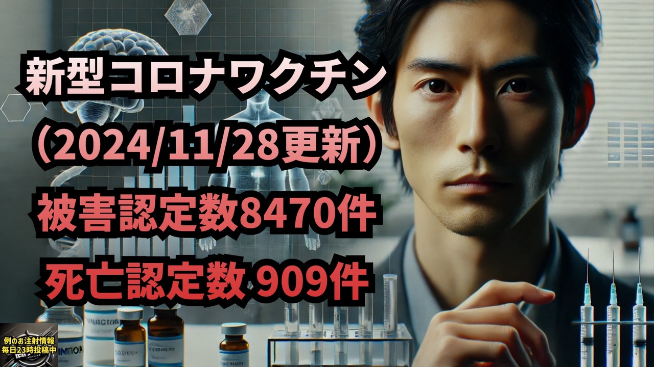 本日(11/28) 厚生労働省公表<br><br>予防接種健康被害救済制度<br>新型コロナワクチン分<br><br>新たに38件(うち死亡6名)が認定されました。<br><br>累計の認定数は8,470件(うち死亡909名)となりました。<br><br>空前絶後の認定数です。厚労省は「重大な懸念は認められない」そうです。異常事態です。<br><a href="https://x.com/JINKOUZOUKA_jp/status/1862010449946091759?t=r5DdiCqG1EpS9UJMJIDY3Q&s=19" target="_blank" rel="noopener nofollow">https://x.com/JINKOUZOUKA_jp/status/1862010449946091759?t=r5DdiCqG1EpS9UJMJIDY3Q&s=19</a><br><br><br>ワクチン<br>コロナワクチン<br>新型コロナウイルス<br>予防接種健康被害救済制度<br>死亡認定<br>被害認定<br>高いハードル<br>認定まで時間がかかる<br>因果関係<br>重大な懸念は認められない<br>ワクチン被害<br><br>マイリンク<a href="https://lit.link/keiichiro8140" target="_blank" rel="noopener nofollow">https://lit.link/keiichiro8140</a><br><br><br />著作権、肖像権に配慮して作成しております。<br><br>◆気になったニュースの台本!?<br>メモ代わりに作った台本をそのままあげてます<br><a href="https://keiichiro8140.hatenablog.com/." target="_blank" rel="noopener nofollow">https://keiichiro8140.hatenablog.com/.</a><br><br><br>ここからはシリーズ紹介<br><br><br>◆ ワクチン解毒・デトックス<br><a href="https://x.gd/fZweg" target="_blank" rel="noopener nofollow">https://x.gd/fZweg</a><br><br>◆ウイリアム・マキス博士のがん治療(イベルメクチン・フェンベンダゾール等)<br><a href="https://x.gd/AtFYS" target="_blank" rel="noopener nofollow">https://x.gd/AtFYS</a><br><br>◆予防接種健康被害救済制度<br><a href="https://x.gd/0xK9x" target="_blank" rel="noopener nofollow">https://x.gd/0xK9x</a><br><br>◆気になったニュース #1501~<br><br>◆ 【ショートver】気になったニュース<br><a href="https://x.gd/7MxXC" target="_blank" rel="noopener nofollow">https://x.gd/7MxXC</a><br><br>◆ 気になったニュース #1001~<br><a href="https://x.gd/Lp8gv" target="_blank" rel="noopener nofollow">https://x.gd/Lp8gv</a><br><br>◆ 気になったニュース #501~<br><a href="https://x.gd/EmbS4" target="_blank" rel="noopener nofollow">https://x.gd/EmbS4</a><br><br>◆ 気になったニュース #1~#500<br><a href="https://x.gd/uPhNb" target="_blank" rel="noopener nofollow">https://x.gd/uPhNb</a><br><br>◆ X(旧Twitter)・テレグラムで気になった情報<br><a href="https://x.gd/YG6FT" target="_blank" rel="noopener nofollow">https://x.gd/YG6FT</a><br><br>◆ 日比谷5万人パレードデ⚪生放送アーカイブ動画<br><a href="https://x.gd/3CHJv" target="_blank" rel="noopener nofollow">https://x.gd/3CHJv</a><br><br>◆日比谷5万人パレード⚪モのマイリスト作ってみました<br><a href="https://nico.ms/mylist/76828848?ref=sp_other" target="_blank" rel="noopener nofollow">https://nico.ms/mylist/76828848?ref=sp_other</a><br><br>◆3.30 令和の百姓⚪⚪<br><a href="https://www.nicovideo.jp/series/511791?ref=garage_share_other" target="_blank" rel="noopener nofollow">https://www.nicovideo.jp/series/511791?ref=garage_share_other</a><br><br>◆ 及川幸久さんの【XNEWS】シリーズ<br><a href="https://x.gd/3k78K" target="_blank" rel="noopener nofollow">https://x.gd/3k78K</a><br><br>◆これまでの動画<a href="https://x.gd/sPXoJ" target="_blank" rel="noopener nofollow">https://x.gd/sPXoJ</a><br><br>◆もしも(BAN)の時のためのマイリンク集<a href="https://lit.link/K-16_News44" target="_blank" rel="noopener nofollow">https://lit.link/K-16_News44</a><br><br>