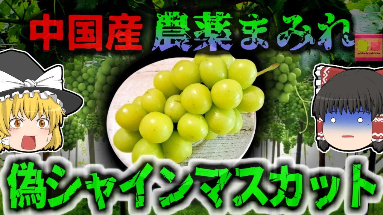 <a href="#" class="seekTime" data-seekTime="00:00" onclick="seekNicoPlayer('#00:00'); return false;">#00:00</a> OP<br><a href="#" class="seekTime" data-seekTime="00:17" onclick="seekNicoPlayer('#00:17'); return false;">#00:17</a> シャインマスカット<br><a href="#" class="seekTime" data-seekTime="1:12" onclick="seekNicoPlayer('#1:12'); return false;">#1:12</a> 東南アジア諸国流通した農薬マスカット<br><a href="#" class="seekTime" data-seekTime="2:46" onclick="seekNicoPlayer('#2:46'); return false;">#2:46</a> 政府当局の調査発表<br><a href="#" class="seekTime" data-seekTime="3:13" onclick="seekNicoPlayer('#3:13'); return false;">#3:13</a> 日本独自の品種が何故中国韓国に?<br><a href="#" class="seekTime" data-seekTime="4:43" onclick="seekNicoPlayer('#4:43'); return false;">#4:43</a> やりたい放題の中韓<br><a href="#" class="seekTime" data-seekTime="5:41" onclick="seekNicoPlayer('#5:41'); return false;">#5:41</a> 農薬まみれの粗悪品<br><a href="#" class="seekTime" data-seekTime="8:03" onclick="seekNicoPlayer('#8:03'); return false;">#8:03</a> 圧倒的な輸出量と偽造品<br><a href="#" class="seekTime" data-seekTime="10:21" onclick="seekNicoPlayer('#10:21'); return false;">#10:21</a> ホームセンターで販売された苗木が流出していたケース<br><a href="#" class="seekTime" data-seekTime="11:19" onclick="seekNicoPlayer('#11:19'); return false;">#11:19</a> 種苗法改正<br><br>引用・出展・参考文献(視聴者提供資料など<br>農林水産省 改正種苗法について<br><a href="https://ishort.ink/mYr6" target="_blank" rel="noopener nofollow">https://ishort.ink/mYr6</a><br>ブドウ「シャインマスカット」栽培の手引き<br><a href="https://ishort.ink/QALT" target="_blank" rel="noopener nofollow">https://ishort.ink/QALT</a><br>農林水産省品種登録ホームページ シャインマスカット<br><a href="https://ishort.ink/DVgQ" target="_blank" rel="noopener nofollow">https://ishort.ink/DVgQ</a><br>プレジデントオンライン「中国が毒を持ち込んできた」とタイ世論が沸騰<br><a href="https://ishort.ink/ngb8" target="_blank" rel="noopener nofollow">https://ishort.ink/ngb8</a><br><br><br />※この動画は過去の事件を知り、現在でも同じことが発生する危険性を再認識、関与しないように促すための動画であり、視聴者を扇動、動揺を誘うためのコンテンツではありません。<br><br>ご要望にお応えして、メンバーシップの開設を行いました。<br>下記URLからも登録可能ですので、ご興味がある方は是非ご参加ください。<br><a href="https://www.youtube.com/channel/UCcT5a1J7XJW7CLYI2RKl4pw/join" target="_blank" rel="noopener nofollow">https://www.youtube.com/channel/UCcT5a1J7XJW7CLYI2RKl4pw/join</a><br><br><br>Twitter<br>→<a href="https://twitter.com/yukkurisurutoko" target="_blank" rel="noopener nofollow">https://twitter.com/yukkurisurutoko</a><br><br>取り急ぎ、簡易的にですがマイリストを作りました。<br>【ゆっくり解説】事故・事件関係紹介リスト <br><a href="https://www.nicovideo.jp/mylist/71034319" target="_blank" rel="noopener nofollow">https://www.nicovideo.jp/mylist/71034319</a><br>【ゆっくり解説】放射線系事故<br><a href="https://www.nicovideo.jp/mylist/71034368" target="_blank" rel="noopener nofollow">https://www.nicovideo.jp/mylist/71034368</a><br>【ゆっくり解説】鉄道系事故・事件関連<br><a href="https://www.nicovideo.jp/mylist/71034379" target="_blank" rel="noopener nofollow">https://www.nicovideo.jp/mylist/71034379</a>