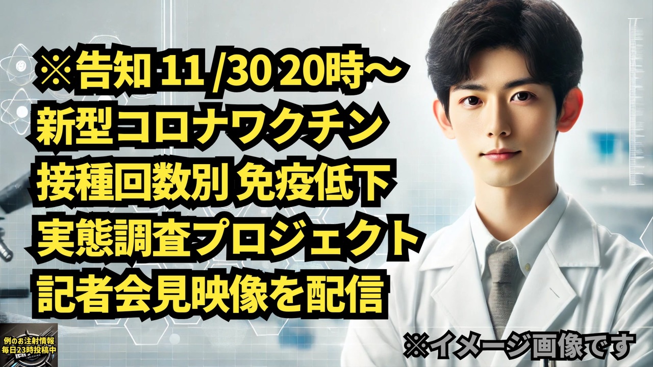 ※何時でも配信リンクから見られます<br><br>配信は20時からスタートです。どなたでもご視聴いただけますので、ぜひご覧いただき、最新の情報を周りの方々と共有してください!<br><br>【配信リンク】<br>我那覇真子さんランブル<br><a href="https://rumble.com/v5uhdyq-113020-.html?e9s=src_v1_ucp" target="_blank" rel="noopener nofollow">https://rumble.com/v5uhdyq-113020-.html?e9s=src_v1_ucp</a><br><br>我那覇真子さん X(旧Twitter)<br><a href="https://x.gd/eoPcp" target="_blank" rel="noopener nofollow">https://x.gd/eoPcp</a><br><br>お見逃しなく!<br><br>昨日行われた@stop_mRNA_com国民連合の新しいプロジェクト発表記者会見<br>今夜映像を配信します<br>是非、最新の活動を皆さんご覧いただき、周りに広めてください!<br>【告知】11 /30 20時〜 新型コロナワクチン接種回数別 免疫低下実態調査プロジェクト記者会見@厚労省<a href="https://x.com/ganaha_masako/status/1862700447410069679?t=N2tbls9Tw7LjjmALLuBLtQ&s=19" target="_blank" rel="noopener nofollow">https://x.com/ganaha_masako/status/1862700447410069679?t=N2tbls9Tw7LjjmALLuBLtQ&s=19</a><br><br>配信は11月30日土曜日20時〜です!<br>是非ご覧ください!<br><a href="https://x.com/ganaha_masako/status/1862709558973464837?t=41ZShJQFu14hN9h70qXAZA&s=19" target="_blank" rel="noopener nofollow">https://x.com/ganaha_masako/status/1862709558973464837?t=41ZShJQFu14hN9h70qXAZA&s=19</a><br><br><br>【新型コロナワクチン接種回数別 免疫低下実態調査プロジェクト】記者会見 動画FULL(50分)<br>日時: 2024/11/29(金) 13:00〜14:00<br>場所: 厚生労働省会見室<br><br>一般社団法人 日本先進医療臨床研究会 代表理事 小林平大央<br>(関連団体) 国際次世代再生医療研究会 顧問医師 板東大晃<br>mRNA ワクチン中止を求める国民連合 代表 後藤均<br>同副代表 東京理科大学名誉教授 村上康文<br><a href="https://x.com/hudikaha/status/1862395032910930371?t=lTymZpqxgGC26W5QKPDh5A&s=19" target="_blank" rel="noopener nofollow">https://x.com/hudikaha/status/1862395032910930371?t=lTymZpqxgGC26W5QKPDh5A&s=19</a><br><br><br>IgG4抗体による免疫低下の実態調査が始まります。皆さん是非!<br>記者会見 撮って出し「新型コロナワクチン接種回数別 免疫低下実態調査プロジェクト」<br><a href="https://x.com/yamajitoru/status/1862499291656602011?t=grsprx5iQXO326u26R_bow&s=19" target="_blank" rel="noopener nofollow">https://x.com/yamajitoru/status/1862499291656602011?t=grsprx5iQXO326u26R_bow&s=19</a><br><br>マイリンク<a href="https://lit.link/keiichiro8140" target="_blank" rel="noopener nofollow">https://lit.link/keiichiro8140</a><br><br><br />著作権、肖像権に配慮して作成しております。<br><br>◆気になったニュースの台本!?<br>メモ代わりに作った台本をそのままあげてます<br><a href="https://keiichiro8140.hatenablog.com/." target="_blank" rel="noopener nofollow">https://keiichiro8140.hatenablog.com/.</a><br><br><br>ここからはシリーズ紹介<br><br><br>◆ ワクチン解毒・デトックス<br><a href="https://x.gd/fZweg" target="_blank" rel="noopener nofollow">https://x.gd/fZweg</a><br><br>◆ウイリアム・マキス博士のがん治療(イベルメクチン・フェンベンダゾール等)<br><a href="https://x.gd/AtFYS" target="_blank" rel="noopener nofollow">https://x.gd/AtFYS</a><br><br>◆予防接種健康被害救済制度<br><a href="https://x.gd/0xK9x" target="_blank" rel="noopener nofollow">https://x.gd/0xK9x</a><br><br>◆気になったニュース #1501~<br><br>◆ 【ショートver】気になったニュース<br><a href="https://x.gd/7MxXC" target="_blank" rel="noopener nofollow">https://x.gd/7MxXC</a><br><br>◆ 気になったニュース #1001~<br><a href="https://x.gd/Lp8gv" target="_blank" rel="noopener nofollow">https://x.gd/Lp8gv</a><br><br>◆ 気になったニュース #501~<br><a href="https://x.gd/EmbS4" target="_blank" rel="noopener nofollow">https://x.gd/EmbS4</a><br><br>◆ 気になったニュース #1~#500<br><a href="https://x.gd/uPhNb" target="_blank" rel="noopener nofollow">https://x.gd/uPhNb</a><br><br>◆ X(旧Twitter)・テレグラムで気になった情報<br><a href="https://x.gd/YG6FT" target="_blank" rel="noopener nofollow">https://x.gd/YG6FT</a><br><br>◆ 日比谷5万人パレードデ⚪生放送アーカイブ動画<br><a href="https://x.gd/3CHJv" target="_blank" rel="noopener nofollow">https://x.gd/3CHJv</a><br><br>◆日比谷5万人パレード⚪モのマイリスト作ってみました<br><a href="https://nico.ms/mylist/76828848?ref=sp_other" target="_blank" rel="noopener nofollow">https://nico.ms/mylist/76828848?ref=sp_other</a><br><br>◆3.30 令和の百姓⚪⚪<br><a href="https://www.nicovideo.jp/series/511791?ref=garage_share_other" target="_blank" rel="noopener nofollow">https://www.nicovideo.jp/series/511791?ref=garage_share_other</a><br><br>◆ 及川幸久さんの【XNEWS】シリーズ<br><a href="https://x.gd/3k78K" target="_blank" rel="noopener nofollow">https://x.gd/3k78K</a><br><br>◆これまでの動画<a href="https://x.gd/sPXoJ" target="_blank" rel="noopener nofollow">https://x.gd/sPXoJ</a><br><br>◆もしも(BAN)の時のためのマイリンク集<a href="https://lit.link/K-16_News44" target="_blank" rel="noopener nofollow">https://lit.link/K-16_News44</a><br><br>