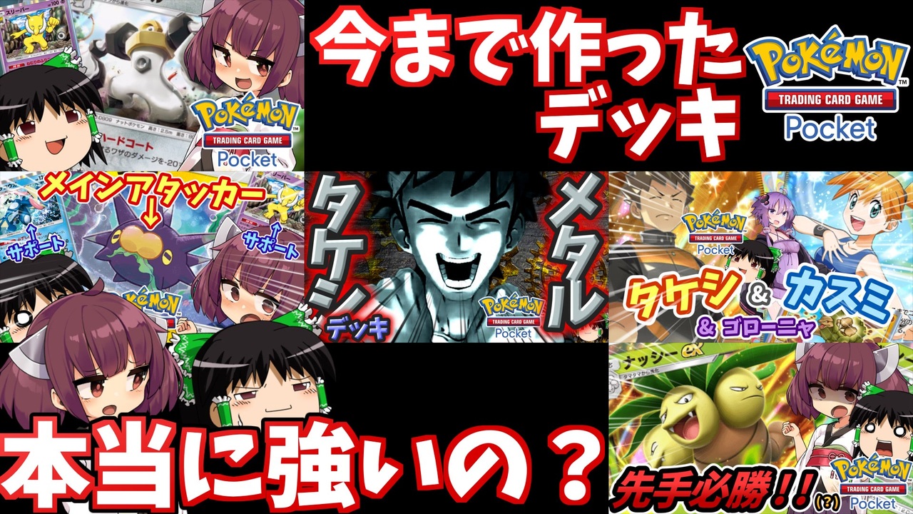 よもぎ餡です。<br>過去動画で紹介したデッキ達、果たしてどの程度勝てるのか?<br>今回は検証動画になります。<br><br>メタル破壊神デッキ→<a href="https://www.nicovideo.jp/watch/sm44310376" class="watch">sm44310376</a><br>バチンウニ親衛隊デッキ→<a href="https://www.nicovideo.jp/watch/sm44326171" class="watch">sm44326171</a><br>タケシ&カスミ混合デッキ→<a href="https://www.nicovideo.jp/watch/sm44334078" class="watch">sm44334078</a><br>先手必勝!?ナッシーデッキ→<a href="https://www.nicovideo.jp/watch/sm44346949" class="watch">sm44346949</a><br>メタルタケシデッキ→<a href="https://www.nicovideo.jp/watch/sm44355309" class="watch">sm44355309</a><br><br>次回→<a href="https://www.nicovideo.jp/watch/sm44393935" class="watch">sm44393935</a><br><br>メインで投稿してるミステリーシリーズ→<a href="https://www.nicovideo.jp/watch/sm43330748" class="watch">sm43330748</a><br><br>マイリスト→<a href="https://www.nicovideo.jp/mylist/77293352" target="_blank" rel="noopener">mylist/77293352</a><br>別作品マイリスト→<a href="https://www.nicovideo.jp/mylist/54227270" target="_blank" rel="noopener">mylist/54227270</a><br><br>Youtube→<a href="https://youtu.be/SLSiur1KeV0" target="_blank" rel="noopener nofollow">https://youtu.be/SLSiur1KeV0</a><br>Twitter→<a href="https://twitter.com/yomogi_an_" target="_blank" rel="noopener nofollow">https://twitter.com/yomogi_an_</a><br><br>●お借りしたもの<br>【BGM】<br>-煉獄庭園- <a href="https://note.com/rengokuteien" target="_blank" rel="noopener nofollow">https://note.com/rengokuteien</a><br>H/MIX GALLERY <a href="http://www.hmix.net/" target="_blank" rel="noopener nofollow">http://www.hmix.net/</a><br><br>【SE】<br>ザ・マッチメイカァズ2nd <a href="http://osabisi.sakura.ne.jp/m2/" target="_blank" rel="noopener nofollow">http://osabisi.sakura.ne.jp/m2/</a><br>効果音ラボ <a href="https://soundeffect-lab.info/" target="_blank" rel="noopener nofollow">https://soundeffect-lab.info/</a><br><br>【フォント】<br>けいふぉんと <a href="http://font.sumomo.ne.jp/font_1.html" target="_blank" rel="noopener nofollow">http://font.sumomo.ne.jp/font_1.html</a><br><br>【素材】<br>ニコニコモンズ <a href="https://commons.nicovideo.jp/" target="_blank" rel="noopener nofollow">https://commons.nicovideo.jp/</a><br>ニコニコ静画 <a href="https://seiga.nicovideo.jp/" target="_blank" rel="noopener nofollow">https://seiga.nicovideo.jp/</a><br><br>【ツール】<br>ゆっくりムービーメーカー4 <a href="https://manjubox.net/ymm4/" target="_blank" rel="noopener nofollow">https://manjubox.net/ymm4/</a><br>AoiSupport <a href="https://aoi-chan.moe/aoisupport/" target="_blank" rel="noopener nofollow">https://aoi-chan.moe/aoisupport/</a><br>VOICEROID+:東北きりたん<br>VOICEROID2:結月ゆかり<br><br>●任天堂ガイドライン<br><a href="https://www.nintendo.co.jp/networkservice_guideline/ja/index.html" target="_blank" rel="noopener nofollow">https://www.nintendo.co.jp/networkservice_guideline/ja/index.html</a>