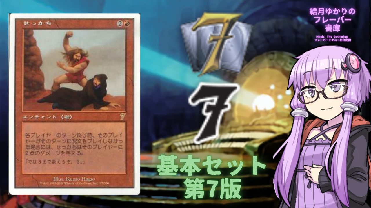 Magic: The Gatheringのオススメフレーバーテキストをエキスパンション毎にご紹介いたします。<br>今回は「基本セット第7版」です。<br><br>予定では神河のストーリー紹介をするはずでしたが、<br>テンプレから外れた編集は作業量が多く、<br>投稿者の体調的にもいつ完成するかが見えないので、<br>いつもの形式での7版紹介になりました。<br>ストーリーを楽しみにしてくださってる方は申し訳ないがお待ちを……<br><br>前回(神河救済 前編)<br><a href="https://www.nicovideo.jp/watch/sm44200715" class="watch">sm44200715</a><br><br>最初から見たい方はこちら(Uサーガ前編)<br><a href="https://www.nicovideo.jp/watch/sm38237531" class="watch">sm38237531</a><br>-------------------------------------<br><strong>支援絵をくださった青ゴキ様のイラスト</strong><br><a href="https://seiga.nicovideo.jp/seiga/im11524156" target="_blank" rel="noopener nofollow">https://seiga.nicovideo.jp/seiga/im11524156</a><br>-------------------------------------