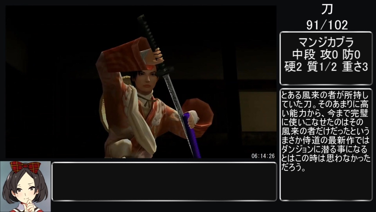 <a href="https://seiga.nicovideo.jp/seiga/im11499335" target="_blank" rel="noopener">im11499335</a> 天奈で活動中の芽伊ちゃんの姿が発見されました<br><br>・PS3版侍道3plusを使用<br>・計測期間はゲーム開始を押した瞬間から全ての刀を帯刀及び刀蔵に入手した状態になるまで<br><br>【無編集全編】<a href="https://youtube.com/live/RjDxzpwMchY?feature=share" target="_blank" rel="noopener nofollow">https://youtube.com/live/RjDxzpwMchY?feature=share</a><br><br>過去のRTA<br><a href="https://www.nicovideo.jp/watch/sm39175313" class="watch">sm39175313</a> 芽伊ちゃんのアイドル忍者ボーボボ<br><a href="https://www.nicovideo.jp/watch/sm39445587" class="watch">sm39445587</a> 芽伊ちゃんの人斬りメモリアル<br><a href="https://www.nicovideo.jp/watch/sm40104002" class="watch">sm40104002</a> 芽伊ちゃん道2<br><a href="https://www.nicovideo.jp/watch/sm41358309" class="watch">sm41358309</a> 寿司<br><a href="https://www.nicovideo.jp/watch/sm41487238" class="watch">sm41487238</a> 芽伊ちゃん血風録<br><a href="https://www.nicovideo.jp/watch/sm43039543" class="watch">sm43039543</a> アリスキャットファイト<br><a href="https://www.nicovideo.jp/watch/sm43217724" class="watch">sm43217724</a> THE不動産<br><a href="https://www.nicovideo.jp/watch/sm43798802" class="watch">sm43798802</a> 天奈人標本