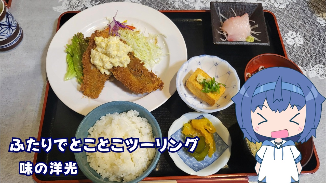 聖芳さんお勧めのお店に行ってきました。<br><br><strong>■味の洋光</strong><br> 〒899-2703 鹿児島県鹿児島市上谷口町4804−54<br> <a href="https://maps.app.goo.gl/HoXYKcJcyzVgKrcL6" target="_blank" rel="noopener nofollow">https://maps.app.goo.gl/HoXYKcJcyzVgKrcL6</a><br> 洋光水産が経営するお店です。読みが分からない……ホットペッパーが「ようこう」だったので、それにあわせました(ヽ''ω`)<br> 安くてボリューム満点のご飯が頂けます。ボリュームもですが、魚フライのおいしさに感動しました。サクサクとして、ふわふわ。そして何より揚げ物なのに胃もたれしなかった!(最近揚げ物が辛い)<br> ひっそりとしたお店ですが、また行きたいなぁと思ったお店でした。<br><br>■一緒に走った人<br>・聖芳さん <a href="https://www.nicovideo.jp/series/38361" target="_blank" rel="noopener">series/38361</a><br><br>■BGM 【ほのぼの】Tea Party【ループ】 <a href="https://commons.nicovideo.jp/works/nc152918" target="_blank" rel="noopener">nc152918</a><br>■立ち絵 すずきつづみ(自作) <a href="https://seiga.nicovideo.jp/seiga/im11033880" target="_blank" rel="noopener">im11033880</a><br>■音声 CeVIO すずきつづみ<br />■車載動画 <a href="https://www.nicovideo.jp/series/5592" target="_blank" rel="noopener">series/5592</a><br> 番外編 <a href="https://www.nicovideo.jp/series/403721" target="_blank" rel="noopener">series/403721</a><br>■ユーザページ <a href="https://www.nicovideo.jp/user/347413" target="_blank" rel="noopener">user/347413</a>