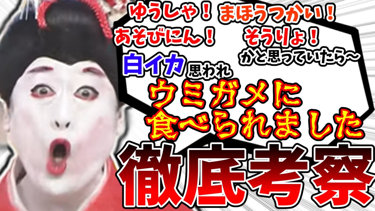 RPGをしていたコウメ太夫は何故白イカと思われ、ウミガメに食べられたのか。<br><br>前 <a href="https://www.nicovideo.jp/watch/sm44367518" class="watch">sm44367518</a><br>後 <a href="https://www.nicovideo.jp/watch/sm44406368" class="watch">sm44406368</a><br><br><span style="font-size: 10px;">(やたらボイスボックスの音がぷつぷつするのは仕方ないんですかね?)</span><br><br>youtube版<br><a href="https://www.youtube.com/watch?v=u9a38XjoApo" target="_blank" rel="noopener nofollow">https://www.youtube.com/watch?v=u9a38XjoApo</a><br><br>【参考書籍】<br>ヴィヴェイロス・デ・カストロ『食人の形而上学』檜垣立哉、山崎吾郎(訳)、洛北出版、2015年<br><br>【まいチク】<br>・ゆうしゃ!まほうつかい!あそびにん!そうりょ!。かと思っていたら~、白イカ思われウミガメに食べられました~。<br><a href="https://x.com/dayukoume/status/1858006697371120056" target="_blank" rel="noopener nofollow">https://x.com/dayukoume/status/1858006697371120056</a><br>・教員の水滴チエツクしようと思ったら~、セクハラで訴えられました~。<a href="https://x.com/dayukoume/status/1749315414004474218" target="_blank" rel="noopener nofollow">https://x.com/dayukoume/status/1749315414004474218</a><br><br>【画像引用】<br>動画内で示しています<br><br>【合成音声】<br>・VOICEVOX 青山龍星<br><br>【使用音楽素材】<br>・しゃろう氏BGM...神隠しの真相、野良猫は宇宙を目指した<br><a href="https://dova-s.jp/_contents/author/profile106.html" target="_blank" rel="noopener nofollow">https://dova-s.jp/_contents/author/profile106.html</a><br>・甘茶の音楽工房氏BGM...沈黙の螺旋<br><a href="https://amachamusic.chagasi.com/music_chinmokunorasen.html" target="_blank" rel="noopener nofollow">https://amachamusic.chagasi.com/music_chinmokunorasen.html</a><br>・ドラクエ風BGM「未知の世界」<br><a href="https://music.storyinvention.com/michi-sekai/" target="_blank" rel="noopener nofollow">https://music.storyinvention.com/michi-sekai/</a>