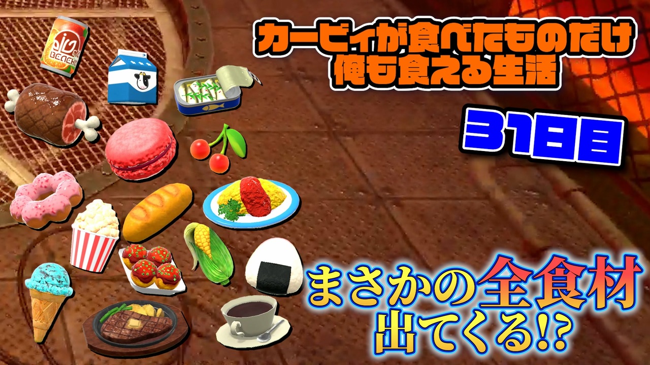 <strong>食材アベンジャーズ</strong><br><br><span style="color: #ff0000;"><strong>~ルール~</strong></span><br>・1日1ステージ分の食材で挑戦<br>・ステージ中に死んだらそこでその日は終了<br>・明らかな元ネタ食材がわかる形状の物or敵のみ現実で食える<br>・カービィの口に入って飲み込んだもののみで、体当たり取得した場合はなし<br>・カービィが飲み込んだものを全て食べる必要はない<br>※ほおばったものは飲み込んでないので食べた判定にならない<br>・GETした食材はその日だけ食べられる(別日には持ち越せない)<br>・無限沸きの敵or食材があったら最初の1体のみ有効<br>・食材は調理してよい(調味料自由)<br>・水だけはOKとする<br>・リトライスター(青)は利用しない<br><br><strong>【次】 下のシリーズ欄から飛んでね<br>【投稿動画まとめ】 <a href="https://www.nicovideo.jp/mylist/32090282" target="_blank" rel="noopener">mylist/32090282</a></strong><br><br><span style="color: #1155cc;"><strong>▼投稿者情報▼</strong></span><br>【Twitter】<a href="https://twitter.com/wakou2525" target="_blank" rel="noopener nofollow">https://twitter.com/wakou2525</a><br>【連絡先】wakou2525otayori@yahoo.co.jp
