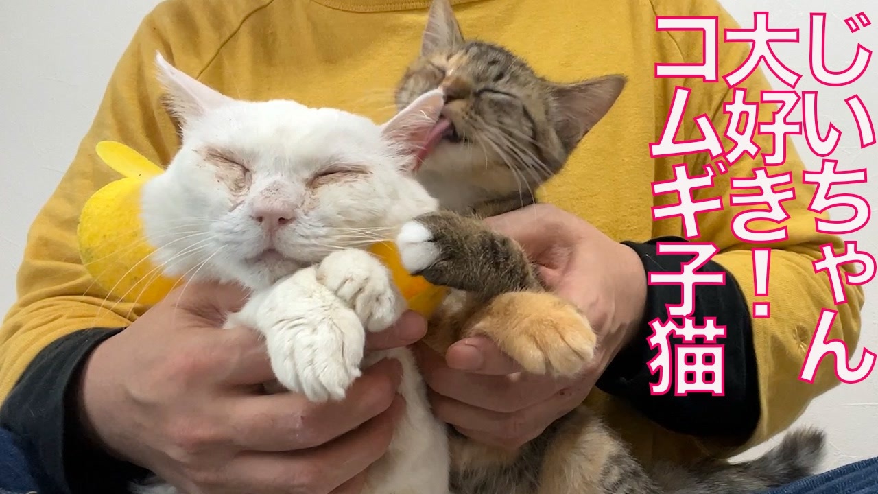 コムギ子猫、猫型珍獣じいちゃん大好きになる 5:15