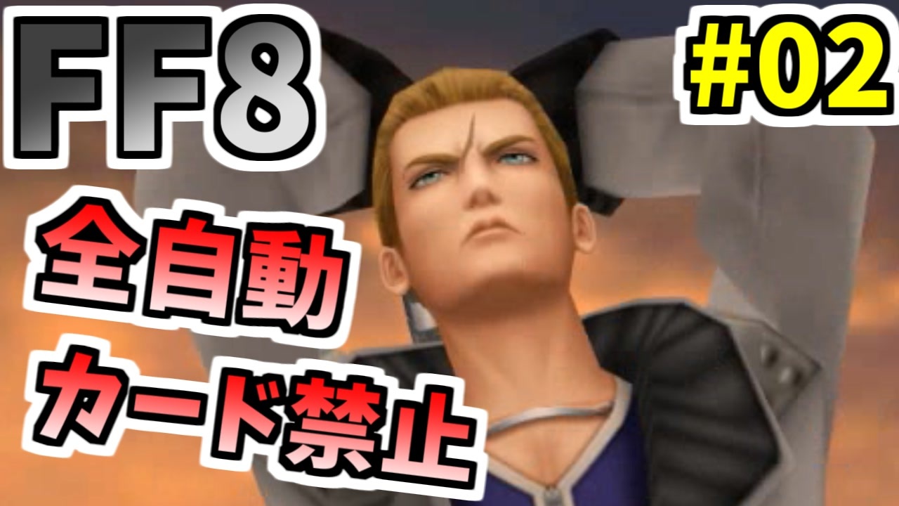 お気楽なFF8の縛りプレイに挑戦します<br><br><strong><プレイ条件><br>①戦闘中のコマンド入力を行わない<br>②カードバトル、カード変化禁止<br>※Remasteredのブースト機能「全てのアイテムを入手」で初めに<br> 「モンクの心得」「光のカーテン」「100本針」「忘れ草」を入手<br> その他のアイテムは全て売却<br>※Remaster版なのでおでかけチョコボRPGは無し</strong><br><br>本プレイのライブ配信アーカイブ<br><a href="https://www.youtube.com/playlist?list=PLaTC5LXX8vcqpsL_bnixo5hFi7eM9xH5D" target="_blank" rel="noopener nofollow">https://www.youtube.com/playlist?list=PLaTC5LXX8vcqpsL_bnixo5hFi7eM9xH5D</a><br><br>part1:<a href="https://www.nicovideo.jp/watch/sm44366612" class="watch">sm44366612</a><br>マイリスト:<a href="https://www.nicovideo.jp/mylist/77353021" target="_blank" rel="noopener">mylist/77353021</a><br><br><strong>【FF8動画シリーズ】</strong><br>◆めちゃくちゃ楽してFF8:<a href="https://www.nicovideo.jp/watch/sm42634440" class="watch">sm42634440</a><br>◆FF8最少「倒した敵の数」クリアに挑戦:<a href="https://www.nicovideo.jp/watch/sm41181428" class="watch">sm41181428</a><br>◆△ボタン禁止でFF8:<a href="https://www.nicovideo.jp/watch/sm38924669" class="watch">sm38924669</a><br>◆FF8 1行動1回縛り:<a href="https://www.nicovideo.jp/watch/sm36982623" class="watch">sm36982623</a><br>◆石橋を叩いてFF8(PC版)を初見プレイ :<a href="https://www.nicovideo.jp/watch/sm34318717" class="watch">sm34318717</a><br>◆FF8最少コマンド入力回数クリアに挑戦:<a href="https://www.nicovideo.jp/watch/sm29792055" class="watch">sm29792055</a><br>◆FF8ノージャンクンション1人旅+α:<a href="https://www.nicovideo.jp/watch/sm27238226" class="watch">sm27238226</a><br><br><strong>【youtube版】</strong><br><a href="https://youtu.be/7DGTNkwwBdM" target="_blank" rel="noopener nofollow">https://youtu.be/7DGTNkwwBdM</a><br><br>Copyright (C) 1999, 2019 SQUARE ENIX CO., LTD. All Rights Reserved.