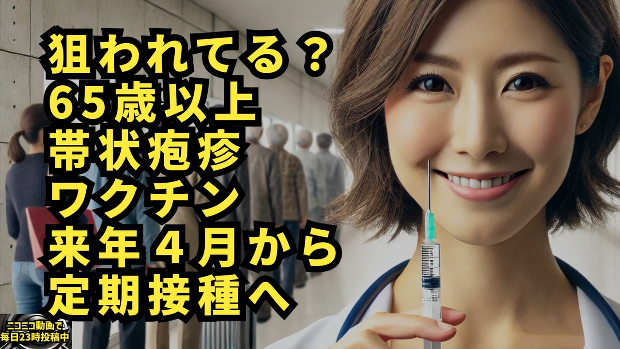 帯状疱疹ワクチン、定期接種へ 来年4月から65歳対象、厚労省(共同通信) - Yahoo!ニュース<br><a href="https://news.yahoo.co.jp/articles/2b241908251528bcb51221c665dfd718aafe6e9a" target="_blank" rel="noopener nofollow">https://news.yahoo.co.jp/articles/2b241908251528bcb51221c665dfd718aafe6e9a</a><br><br>被害多いんだけどな…<br><br>帯状疱疹ワクチン、2025年4月から<br>65歳以降、5歳刻みで定期接種へ最終調整<br><br>インフルエンザやコロナワクチンと同じ<br>予防接種法B類に位置づける方針<br><a href="https://x.com/fraisst/status/1864953971691131014?t=qfrxekcKlS1OZuR5nnkk6A&s=19" target="_blank" rel="noopener nofollow">https://x.com/fraisst/status/1864953971691131014?t=qfrxekcKlS1OZuR5nnkk6A&s=19</a><br><br>これぞ、マッチポンプ〜<br><a href="https://x.com/nbe222/status/1864677690059706844?t=-_I-soMC5eKA6N8ihQ_hjQ&s=19" target="_blank" rel="noopener nofollow">https://x.com/nbe222/status/1864677690059706844?t=-_I-soMC5eKA6N8ihQ_hjQ&s=19</a><br><br>帯状疱疹とコロナワクチン<br><a href="https://x.com/You3_JP/status/1806362467934867920?t=Lu4Qt9cUfvIpe0iv5T7dWA&s=19" target="_blank" rel="noopener nofollow">https://x.com/You3_JP/status/1806362467934867920?t=Lu4Qt9cUfvIpe0iv5T7dWA&s=19</a><br><br><br>帯状疱疹<br>ワクチン<br>定期接種<br>厚生労働省<br>ワクチン副反応<br>予防接種<br>新型コロナウイルス<br>コロナワクチン<br>65歳以上対象<br>帯状疱疹ワクチン<br>ワクチンの必要性<br><br><br>マイリンク<a href="https://lit.link/keiichiro8140" target="_blank" rel="noopener nofollow">https://lit.link/keiichiro8140</a><br><br><br />著作権、肖像権に配慮して作成しております。<br><br>◆気になったニュースの台本!?<br>メモ代わりに作った台本をそのままあげてます<br><a href="https://keiichiro8140.hatenablog.com/." target="_blank" rel="noopener nofollow">https://keiichiro8140.hatenablog.com/.</a><br><br><br>ここからはシリーズ紹介<br><br><br>◆ ワクチン解毒・デトックス<br><a href="https://x.gd/fZweg" target="_blank" rel="noopener nofollow">https://x.gd/fZweg</a><br><br>◆ウイリアム・マキス博士のがん治療(イベルメクチン・フェンベンダゾール等)<br><a href="https://x.gd/AtFYS" target="_blank" rel="noopener nofollow">https://x.gd/AtFYS</a><br><br>◆予防接種健康被害救済制度<br><a href="https://x.gd/0xK9x" target="_blank" rel="noopener nofollow">https://x.gd/0xK9x</a><br><br>◆気になったニュース #1501~<br><br>◆ 【ショートver】気になったニュース<br><a href="https://x.gd/7MxXC" target="_blank" rel="noopener nofollow">https://x.gd/7MxXC</a><br><br>◆ 気になったニュース #1001~<br><a href="https://x.gd/Lp8gv" target="_blank" rel="noopener nofollow">https://x.gd/Lp8gv</a><br><br>◆ 気になったニュース #501~<br><a href="https://x.gd/EmbS4" target="_blank" rel="noopener nofollow">https://x.gd/EmbS4</a><br><br>◆ 気になったニュース #1~#500<br><a href="https://x.gd/uPhNb" target="_blank" rel="noopener nofollow">https://x.gd/uPhNb</a><br><br>◆ X(旧Twitter)・テレグラムで気になった情報<br><a href="https://x.gd/YG6FT" target="_blank" rel="noopener nofollow">https://x.gd/YG6FT</a><br><br>◆ 日比谷5万人パレードデ⚪生放送アーカイブ動画<br><a href="https://x.gd/3CHJv" target="_blank" rel="noopener nofollow">https://x.gd/3CHJv</a><br><br>◆日比谷5万人パレード⚪モのマイリスト作ってみました<br><a href="https://nico.ms/mylist/76828848?ref=sp_other" target="_blank" rel="noopener nofollow">https://nico.ms/mylist/76828848?ref=sp_other</a><br><br>◆3.30 令和の百姓⚪⚪<br><a href="https://www.nicovideo.jp/series/511791?ref=garage_share_other" target="_blank" rel="noopener nofollow">https://www.nicovideo.jp/series/511791?ref=garage_share_other</a><br><br>◆ 及川幸久さんの【XNEWS】シリーズ<br><a href="https://x.gd/3k78K" target="_blank" rel="noopener nofollow">https://x.gd/3k78K</a><br><br>◆これまでの動画<a href="https://x.gd/sPXoJ" target="_blank" rel="noopener nofollow">https://x.gd/sPXoJ</a><br><br>◆もしも(BAN)の時のためのマイリンク集<a href="https://lit.link/K-16_News44" target="_blank" rel="noopener nofollow">https://lit.link/K-16_News44</a><br><br>